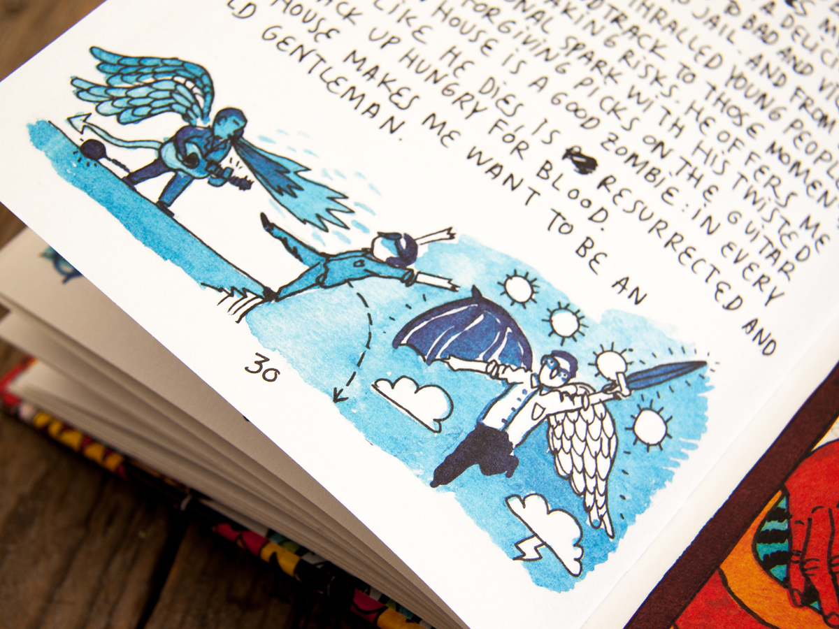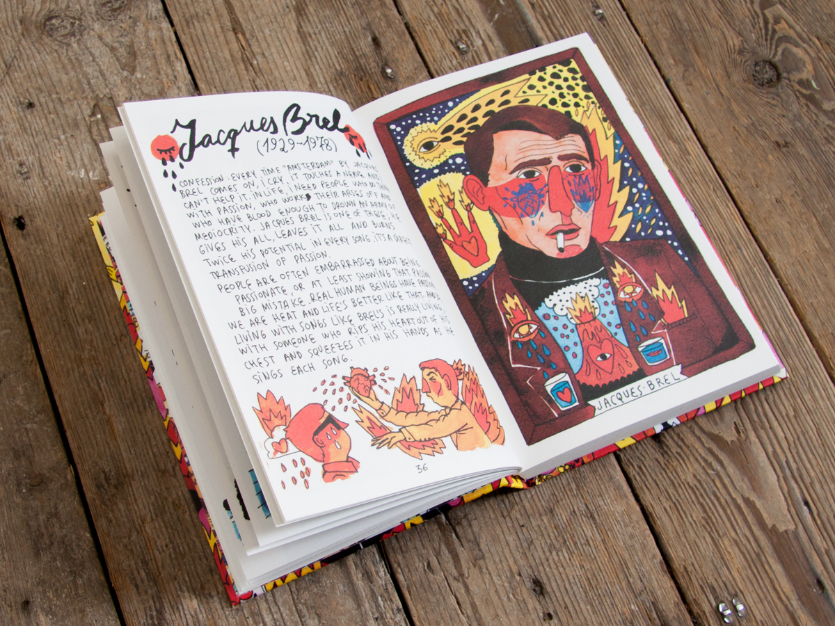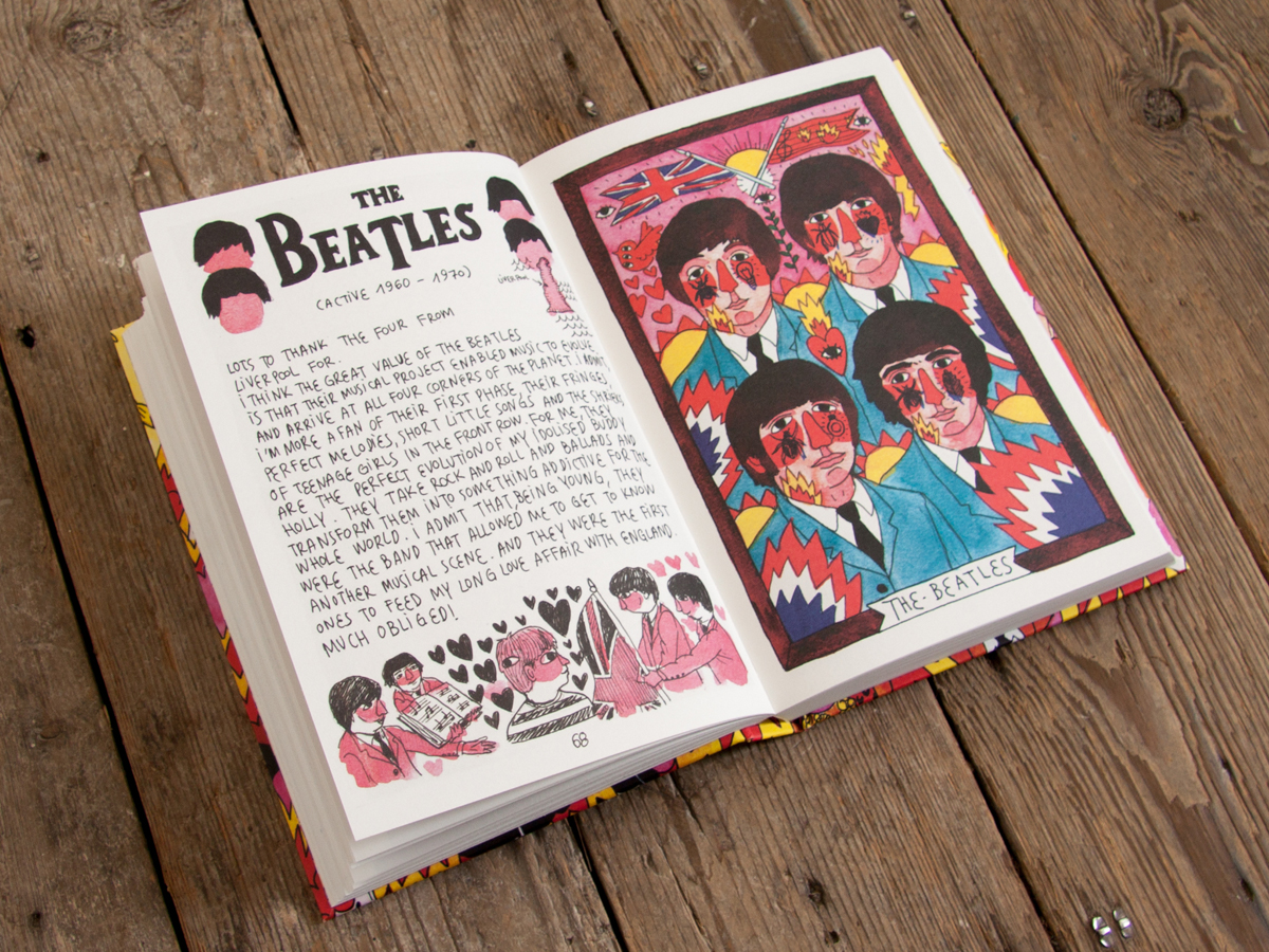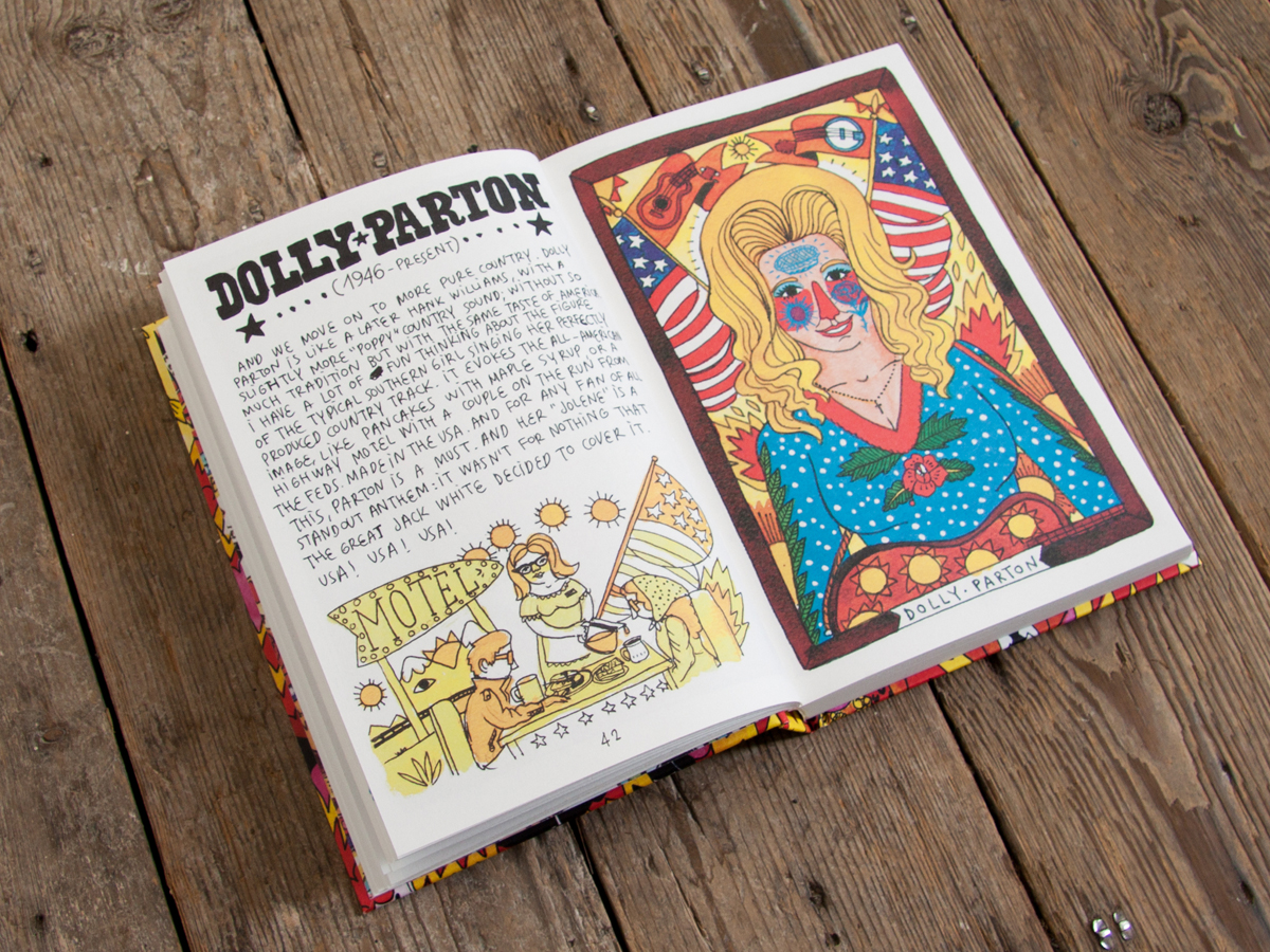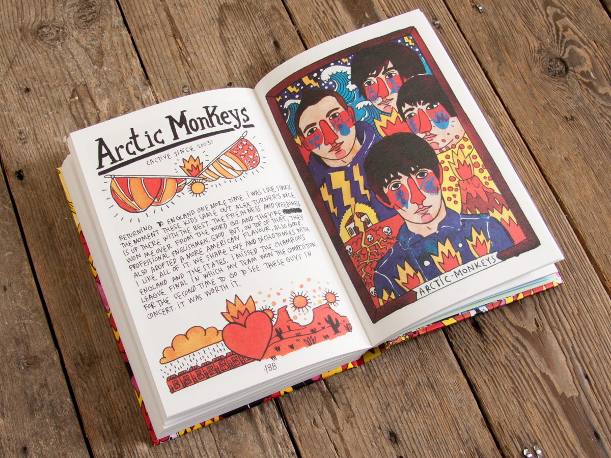 “101 artists to listen before you die” es su título, una celebración de la música en color, parte diario del artista y parte bucket list para ir tachando y asegurarse de que no nos haya quedado ninguno afuera. Pensado a doble página, cada músico viene acompañado no solo de un retrato sino de un pequeño texto autobiográfico en el que Cávolo nos cuenta cómo influyeron las canciones que interpretan en su vida.