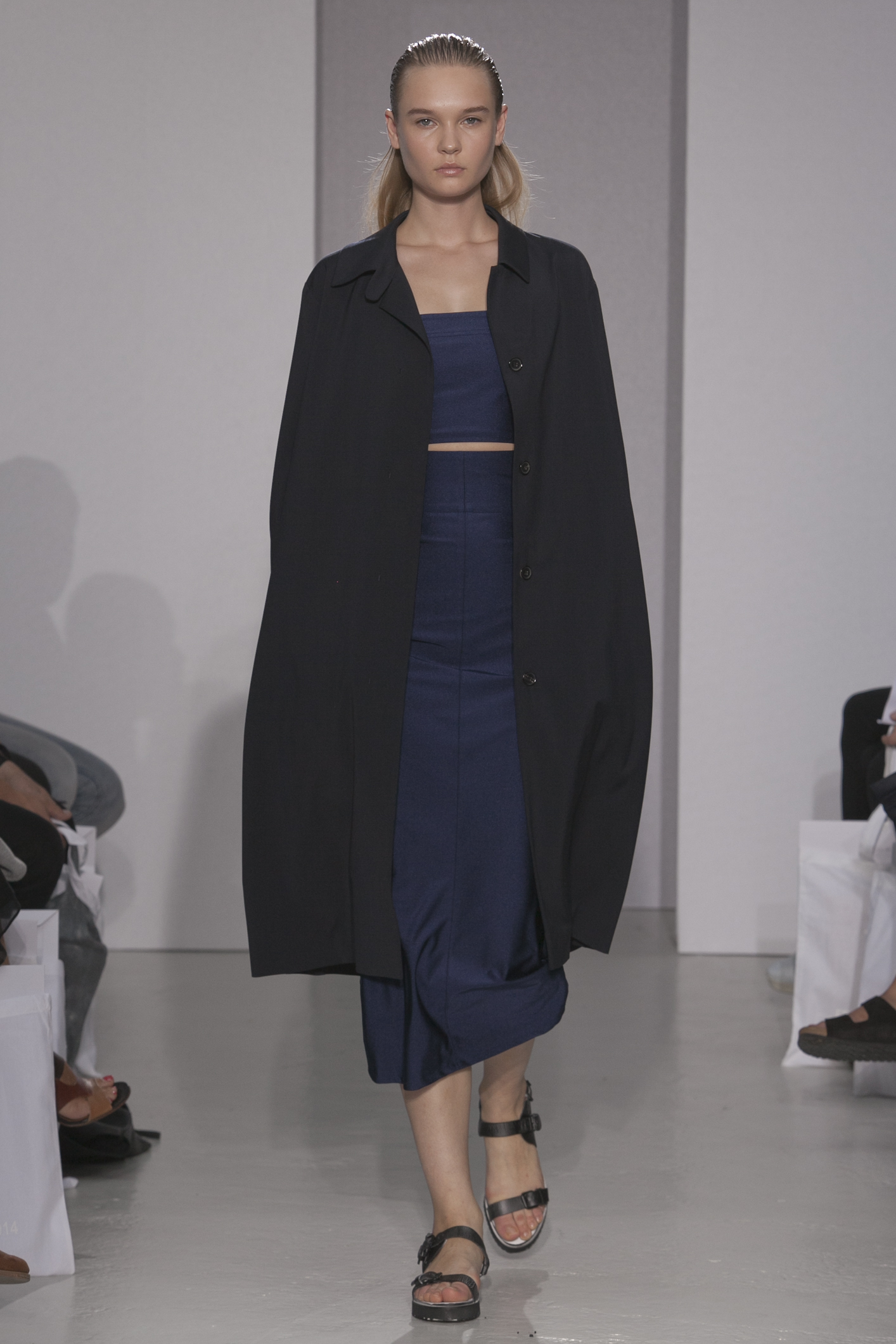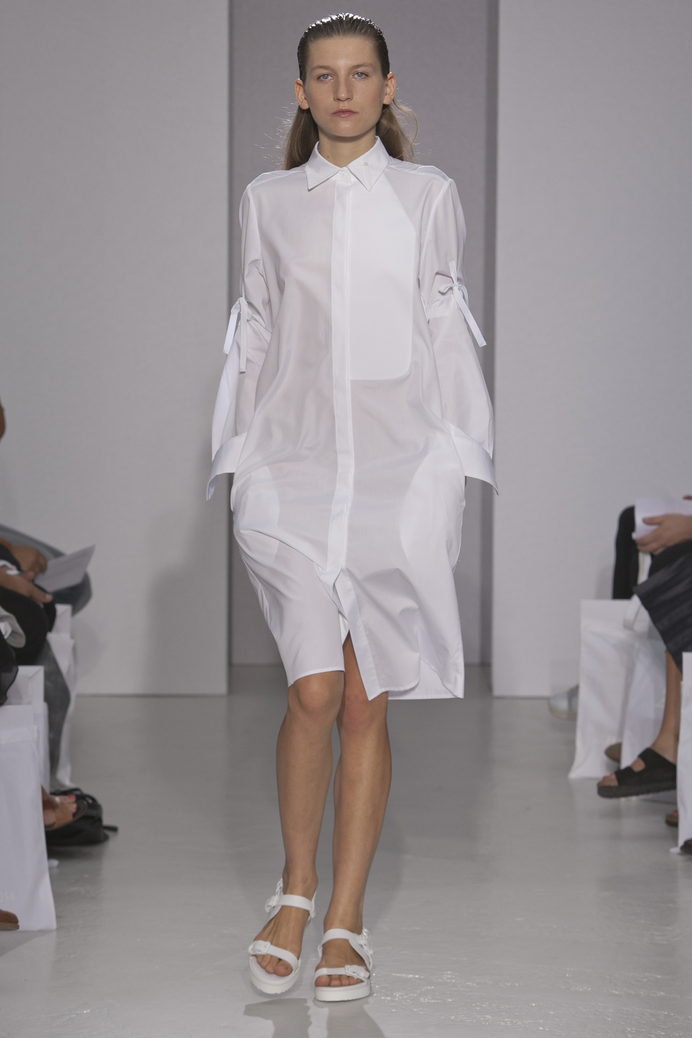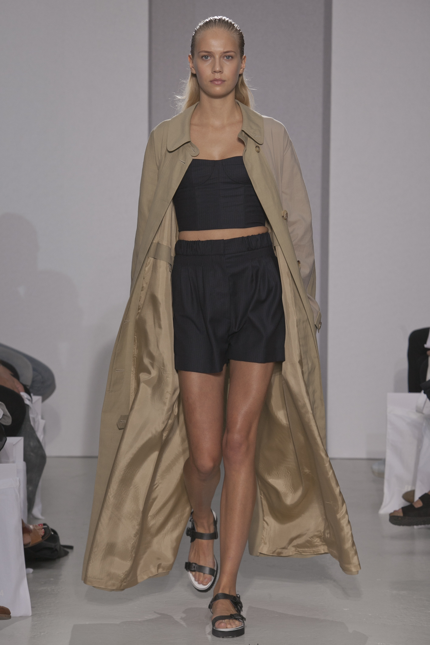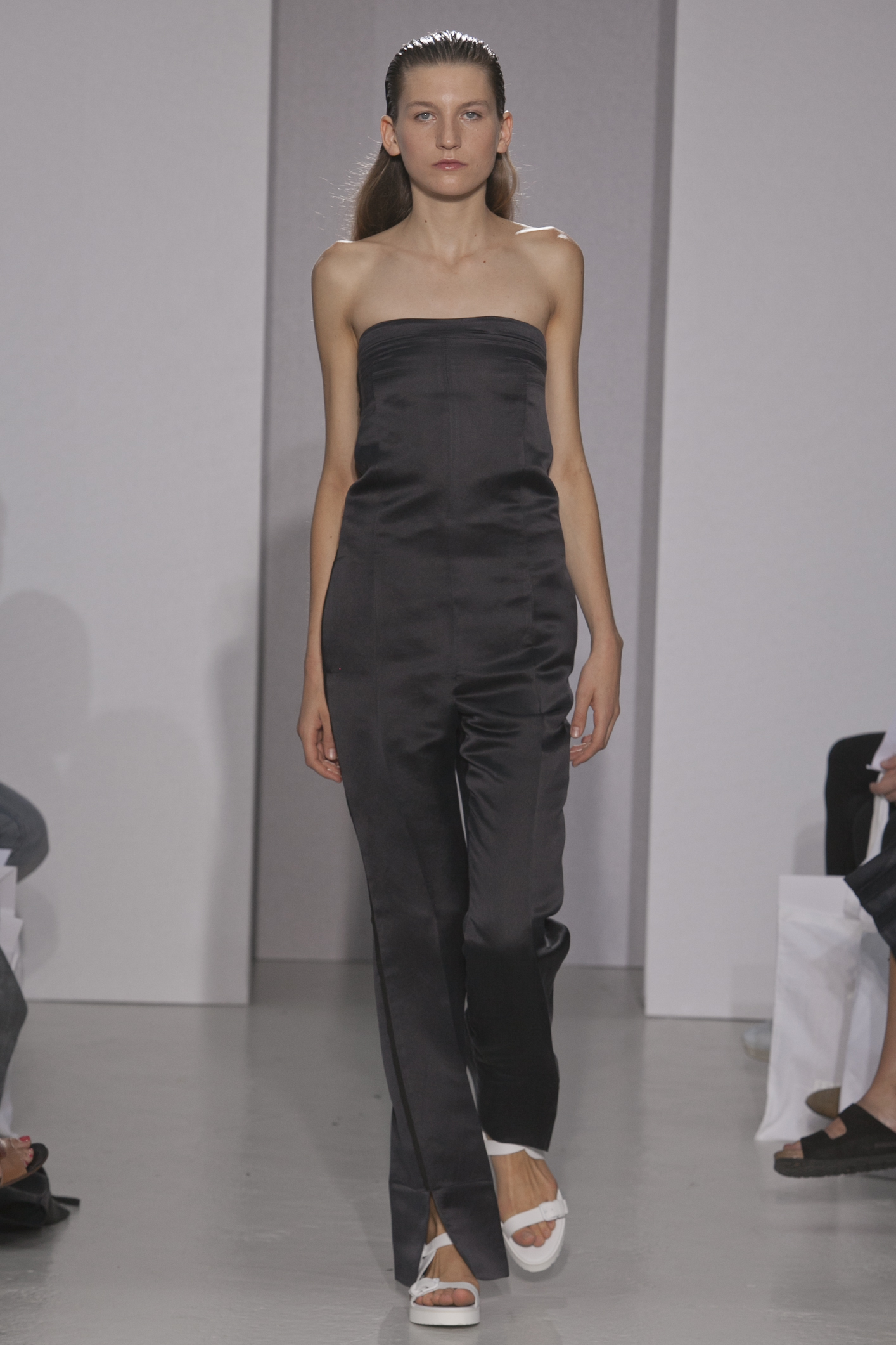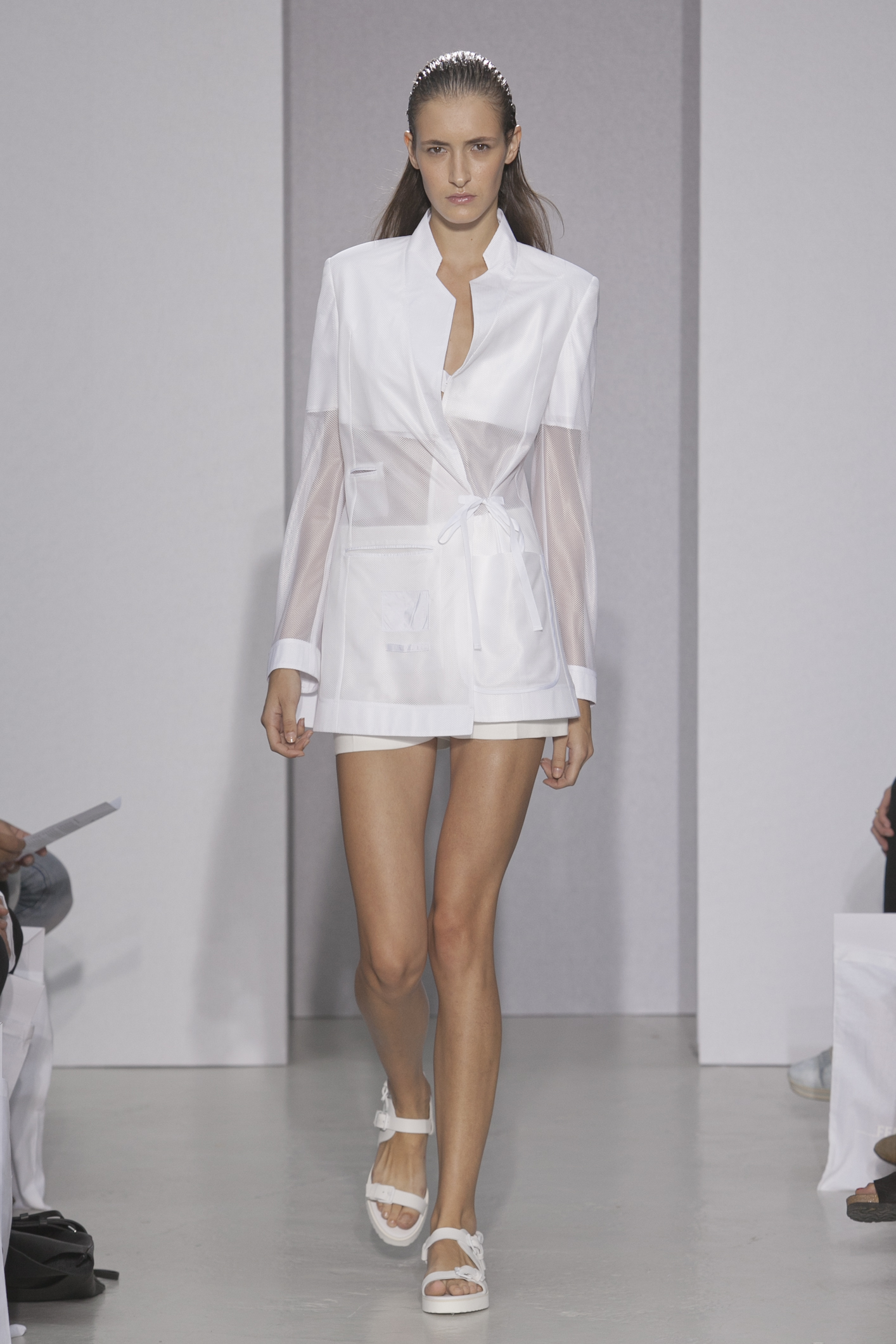 La silueta es relajada, escotes redondeados, pantalones rasgados y sandalias planas con hebillas y trench livianos. El color rosa llamativo pone de manifiesto una serie atrevida y femenina, en lana liviana como una camisa de vestir y vaporosa enmarcando el busto por un sujetador balconette cuadrado. Jardineros y vestidos de cóctel siguen la creación de una serie de bustiers en popelina. Un toque perverso, el uneclutch con cable y una falda amplia en PVC print pitón extiende el discurso de las texturas inquietantes.