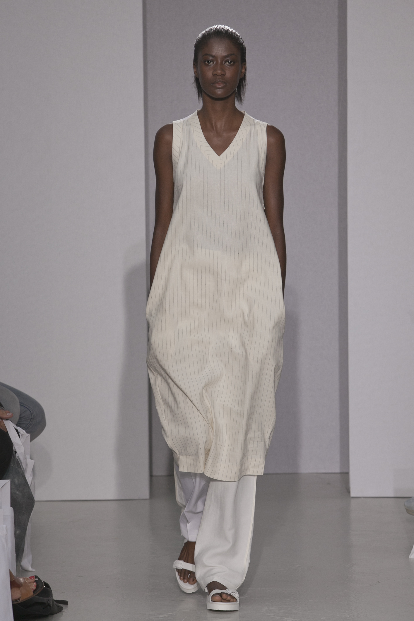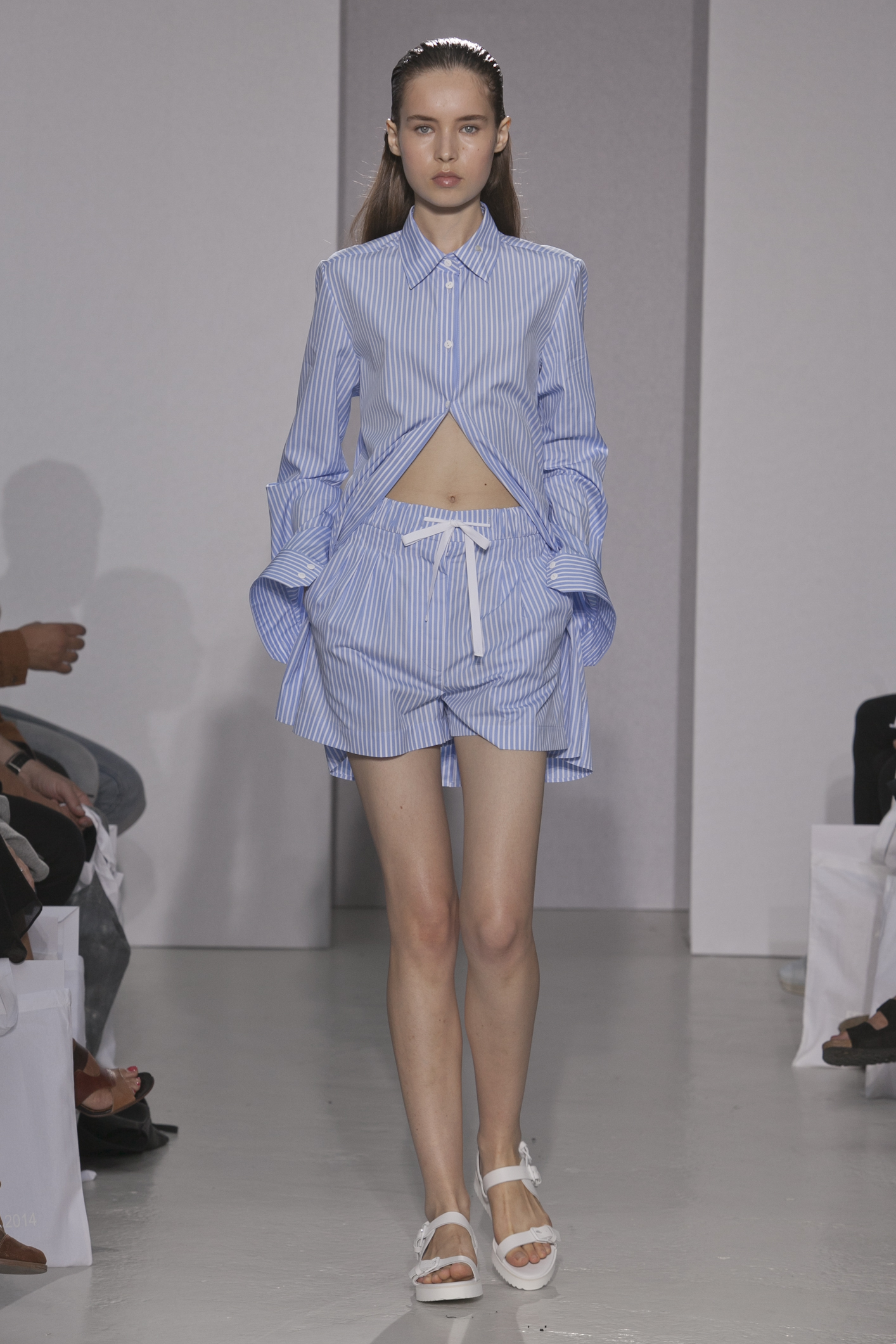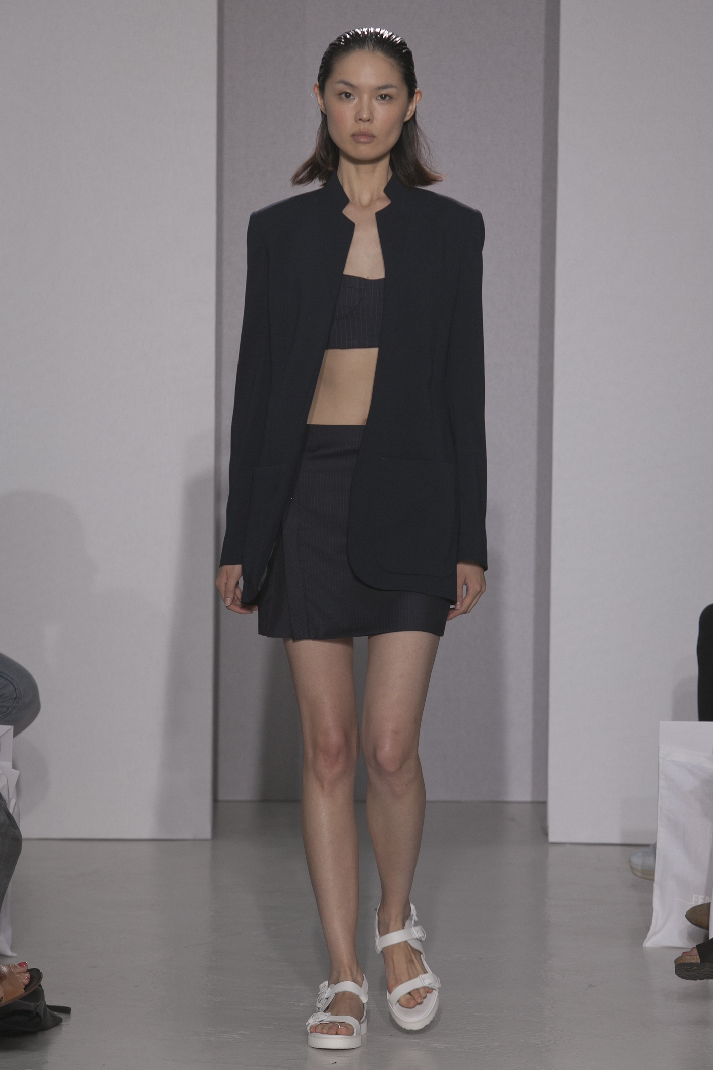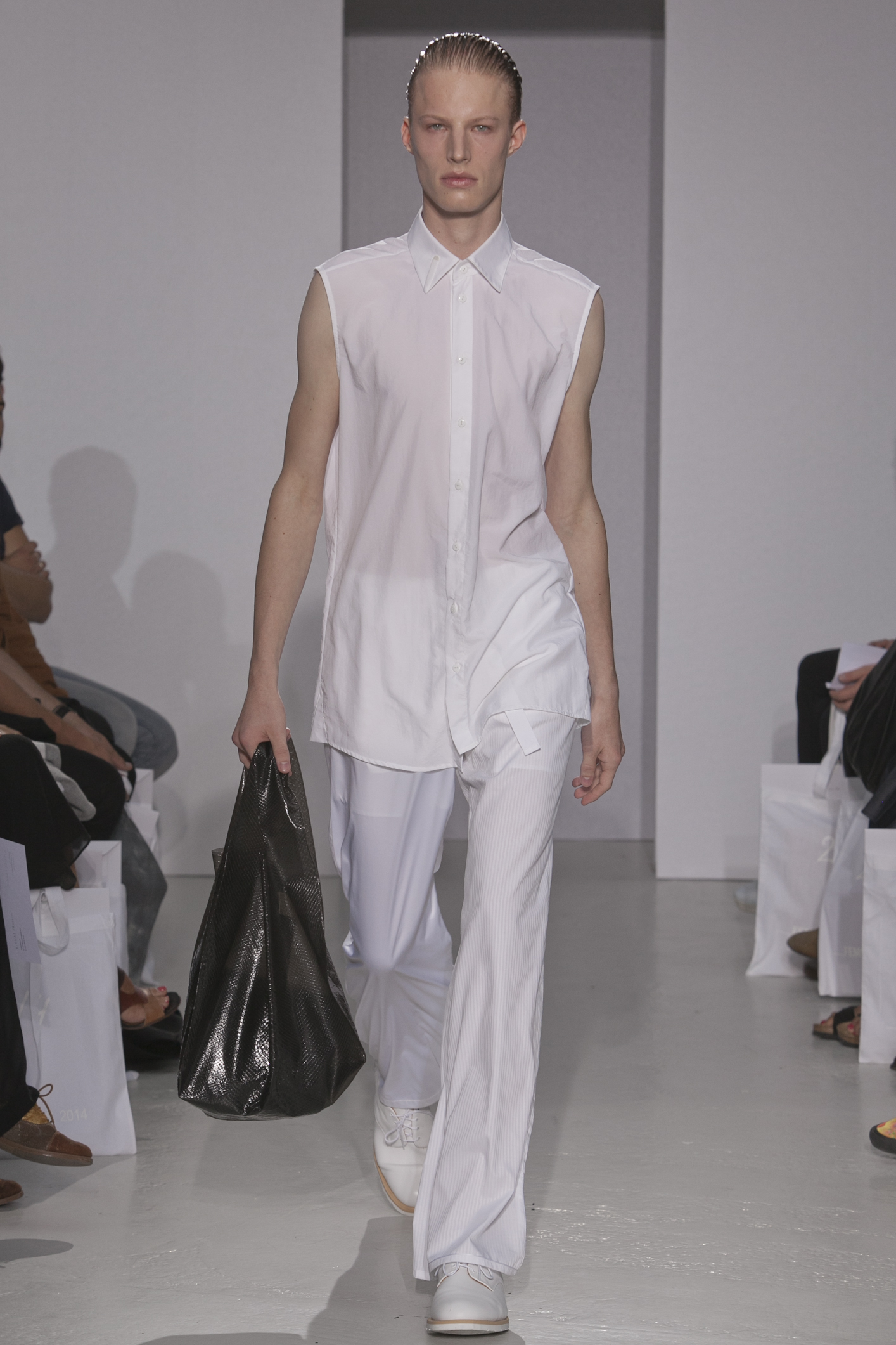 La silueta es relajada, escotes redondeados, pantalones rasgados y sandalias planas con hebillas y trench livianos. El color rosa llamativo pone de manifiesto una serie atrevida y femenina, en lana liviana como una camisa de vestir y vaporosa enmarcando el busto por un sujetador balconette cuadrado. Jardineros y vestidos de cóctel siguen la creación de una serie de bustiers en popelina. Un toque perverso, el uneclutch con cable y una falda amplia en PVC print pitón extiende el discurso de las texturas inquietantes.