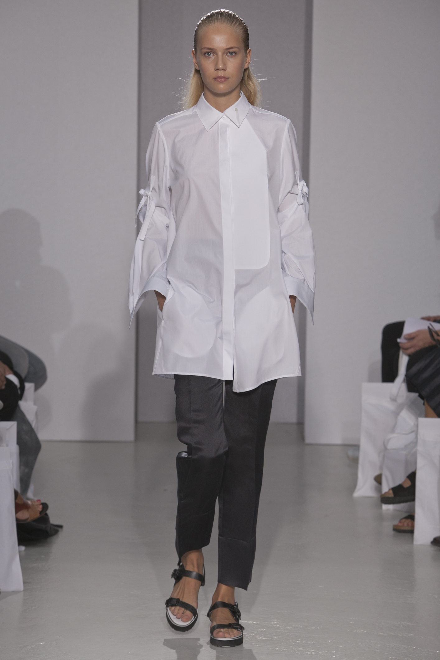 Como siempre la camisa sigue siendo parte de la historia de 22/4, en color blanco sobre pinturas monocromas inspiradas en el artista norteamericano Robert Ryman. Además, la diseñadora trae una nueva propuesta en la coleccion cápsula “RotenTeppich” con una serie de piezas para la noche, una línea inspirada en el smoking.
