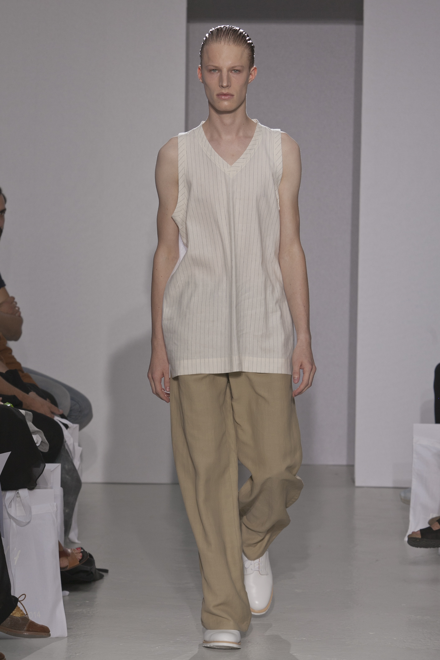 Sin artificios, Stephanie Hahn, la diseñadora alemana de 22/4_Hommes_Femmes, nos revela diseños sobrios para hombres y mujeres. A partir de la experiencia de la sastrería y un refinamiento preciso crea un armario pragmático: modelos de ingeniería que logran transponerse de modo que las mujeres y los hombres parecen idénticos. El hilo conductor parte de la línea deportiva, y se ve a través de un intrínseco clasicismo destacado por la calidad de materiales italianos y terminaciones sublimes.