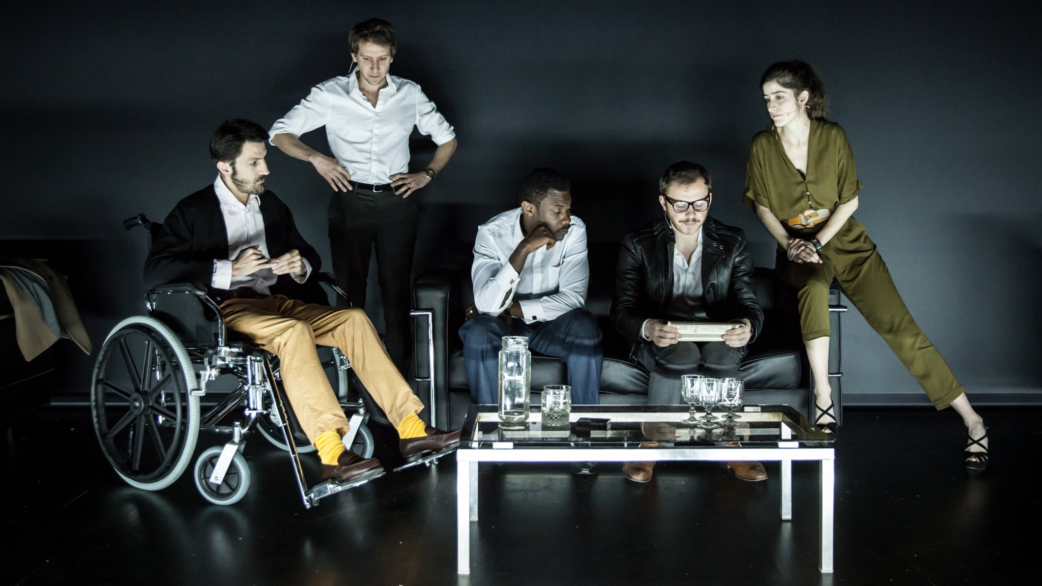 La obra de Gosselin, me parece, está hecha muy en serio. La primera parte es una maratón de dos horas a pura verborragia. Toda la acción es pura conversación acelerada intercalada con recursos narrativos (filmaciones en circuito cerrado, sonidos feroces, juegos de luces), pero el vértigo está dado únicamente por el habla. En un momento sucede que los protagonistas se enojan con un taxistas de origen árabe y lo sacan del auto y le dan una golpiza asesina en nombre de todas las causas justas o injustas que se les da por nombrar. Mientras en el libro pasa la golpiza, en la obra pasa el relato de la golpiza. Es una recurrencia a lo largo de toda la obra, con excepción de la parte de Fate, donde sí vemos al personaje –Fate– entrar en acción.