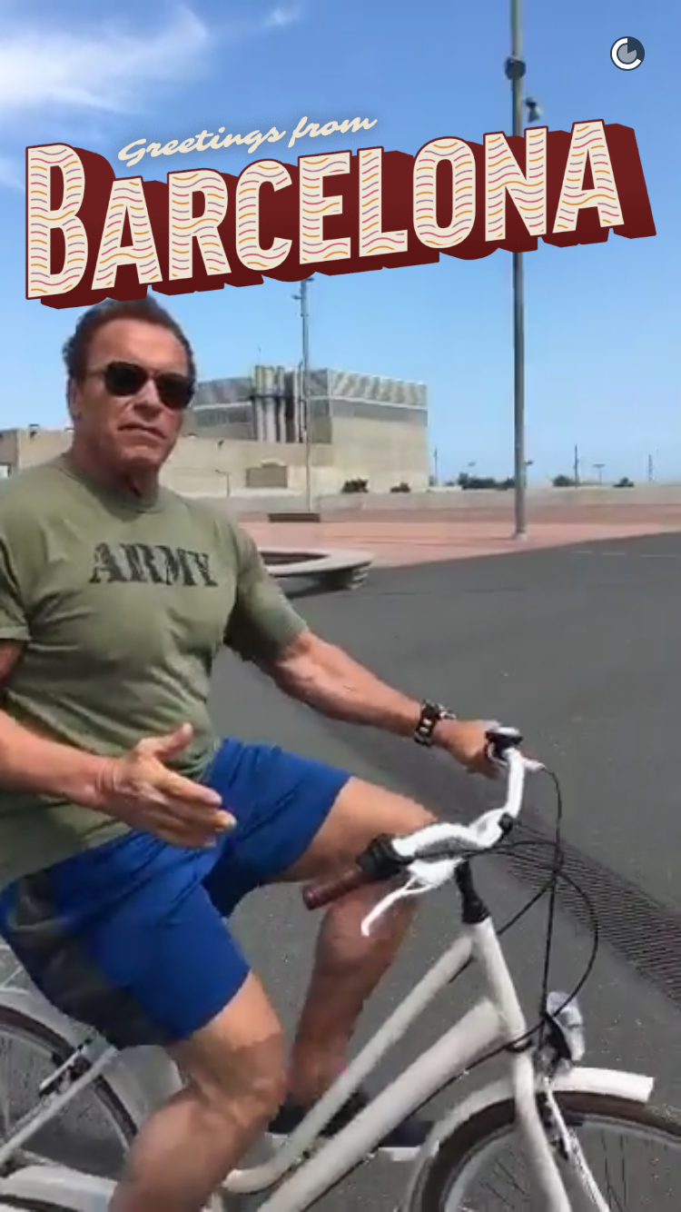 ¿Qué mas decir del Mr. Olympia más joven, galardonado actor, ex-Gobernador de California, Terminator modelo T-800? Bueno, además de todo eso, la rompe en Snapchat. Con su acento austríaco y simpatía, Arnold nos muestra el mundo a través de sus ojos, sumando frases de sus películas más conocidas. A “Get to the choppa’!” y “I’ll be back” vamos a tener que sumarle su nueva muletilla snapchattera: “Look at this”