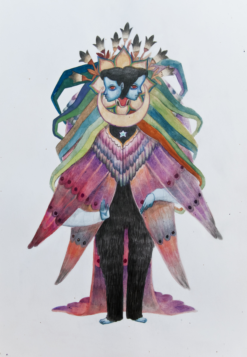 Fue algo que salió sin pensar. Empezamos jugando en el taller de Paula cuando yo pasaba por ahí. Cada vez que la iba a visitar, garabateábamos en simultáneo o por turnos. Siempre había hojas y lápices de colores. Uno o dos años más tarde, nos encontramos pintando seriamente mezclando procesos creativos sobre tela. Básicamente, es como tener una banda ¡pero de pintar! Ahora estamos desarrollando arquitecturas de fantasía, tenemos el sueño de diseñar una casita bien geométrica y habitable para pintarla completamente con nuestro estilo.