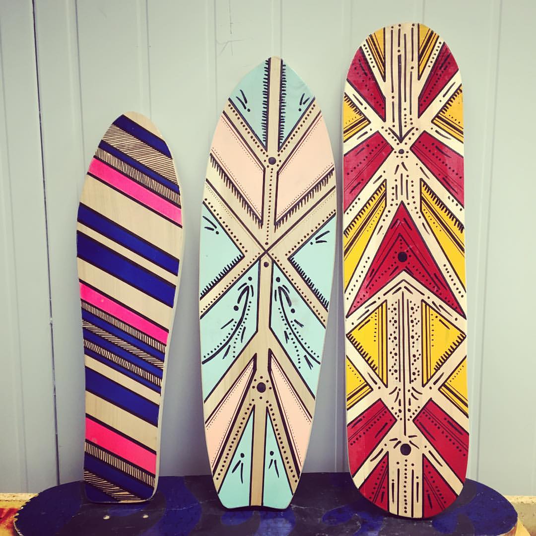 Elegimos el tipo old school, porque necesitábamos que fuera posible de construir con herramientas que al alcance de la mayoría de las personas. Todo surge de una amistad y de una experiencia personal. Hace un par años, Josefina recordó la felicidad que sentía al andar en patineta y, tomando esa sensación como guía, decidió volver a andar. Al tiempo se frustró porque los dos skates que se había comprado se le cayeron al río y casi ni los usó. Motivada por el desafío como motor se dijo: “Yo puedo hacer MI propia patineta y a cada vez que la rompa, la volveré construir”. La primera la armó con la tapa de un cajón y sintió que si ella podía todos podían. Mientras Josefina construía su patineta, Sofía vendió la suya para comprar dos más y volver a andar juntas, multiplicando los recursos. Así nacieron las Deslízate.