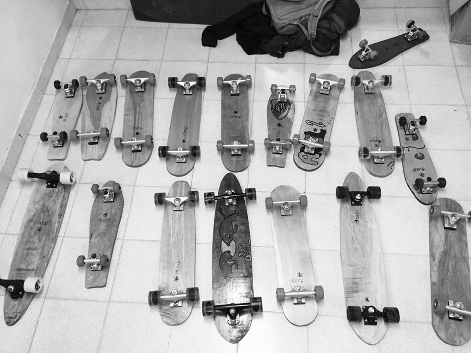 En los talleres los chicos aprenden a construir su propia patineta empoderándolos a través de la construcción de su propia herramienta de juego. El año pasado estuvimos capacitando a más de 200 chicos en la Villa 1 11 14, Villa Piletones, La Cava, Munro, y en Tierra del Fuego (Rio grande, Ushuaia y Tolhuin). Este año estaremos trabajando en Villa 1 11 14, Barrio La Loma, La Cava, Villa 20, Villa Piletones, en la ciudad de Olavarría, Tierra del Fuego, entre otros lugares con más de 350 niños y jóvenes.