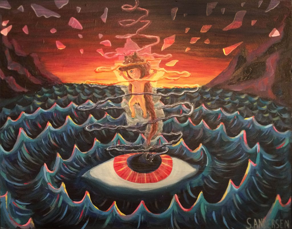Santiago Andersen: Bueno en mi caso también soy músico en El Plan, así que entre la música y lo visual El Plan ocupa todo mi día. Respecto de la parte visual, desde chico siempre me gustó dibujar, aunque después de terminar el colegio, por varios años no dibujé mucho. Cuando arrancamos con la banda, la situación me fue empujando primero a redescubrir el dibujo, que lo tenía olvidado, y después ir desarrollando nuevas cosas, del dibujo empecé a probar con la pintura que es todo otro mundo y después también a hacer animación y postpropucción digital para las visuales que ponemos cuando tocamos en vivo. Fue algo que se dio naturalmente y es una onda expansiva que se sigue ampliando… El Plan es una banda de rock y a la vez funciona como un colectivo artístico, nos gusta llevar adelante los proyectos de forma integral desde la música, lo visual, la producción. Estoy agradecido de eso porque me plantea desafíos todo el tiempo y me da oportunidades para compartir experiencias interesantes y desarrollar distintos tipos de arte. Sin ser un especialista, voy encontrando mi espacio para hacer cosas que me gustan en muchas técnicas diferentes, es un juego apasionante.