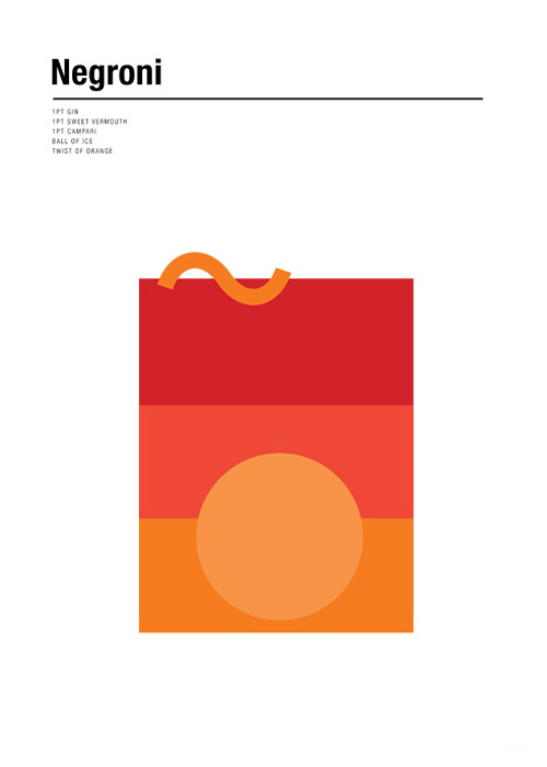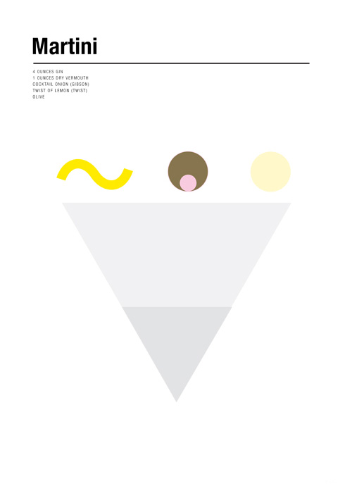 Encontramos un trabajo muy minimalista hecho por él en el que ilustra 9 tragos clásicos como el Bloody Mary, Martini, Negroni, Bellini, entre otros, y además nos enseña a hacerlos.