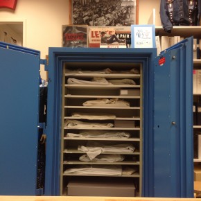 Es un viernes lluvioso y del otro lado de una puerta lateral y enteramente inocua nos recibe Lynn Downey, historiadora y archivista de la marca que un inmigrante de Bavaria llamado Levi Strauss fundaba allá por 1853. Enfundada en guantes blancos y una sonrisa imperturbable, Lynn abre un placard metálico azul brillante, una suerte de caja fuerte a prueba de terremotos, fuego y agua, en la que fila tras fila se esconden los tesoros mas valiosos del archivo de Levi Strauss & Co. Parece exagerado, pero la marca ya tuvo la amarga experiencia de haber perdido una enorme parte de su historia con el famoso terremoto que sacudió a San Francisco en 1906, en el que la casa central de Levi’s y dos de las fábricas fueron totalmente destruidas.