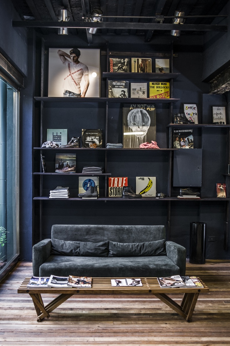 La utilización de materiales nobles como madera de demolición, chapa, cuero y piedra, en armonía con la paleta elegida donde predominan el azul, verde, gris y negro hacen del local una propuesta elegante y original dentro del circuito de Palermo. El proyecto estuvo a cargo del reconocido arquitecto Alejandro Sticotti, dueño de la marca Net muebles y de un estilo inconfundible que se caracteriza por su modernidad y calidez.