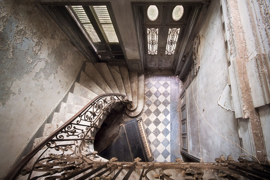 Abandoned Staircases es una de sus series en las que recorre, literalmente, las diagonales de estas figuras arquitectónicas. “Cuando arranqué con mi travesía a través de la fotografía urbana, veía en su mayoría edificios vacíos y en decadencia. No tomó mucho para que me picara la curiosidad… ¿cuál era la historia detrás de esos edificios? ¿quién vivió ahí? ¿Qué propósito cumplían y por qué fueron abandonados?” se pregunta Robroek.