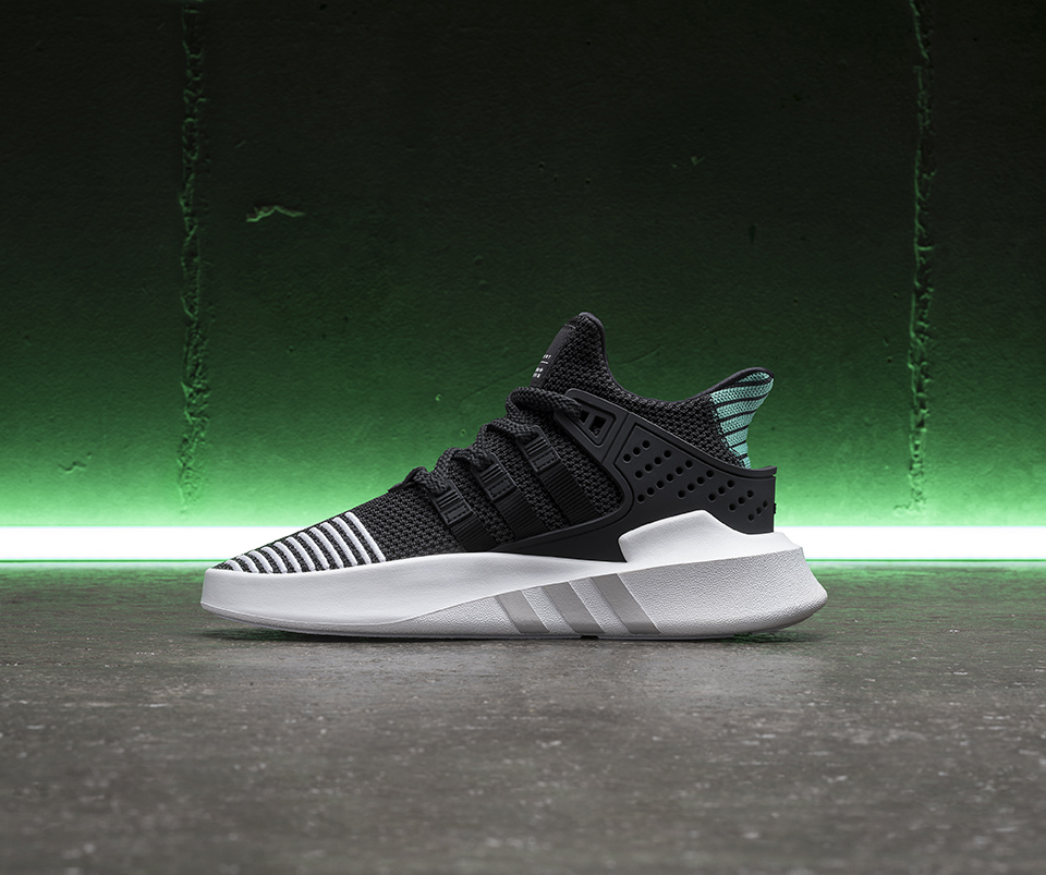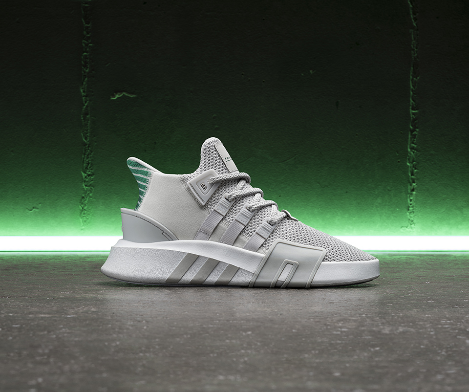 Con una propuesta escultural, inspirada en las botas interiores de los antiguos modelos que pisaban las canchas de basketball, las EQT Bask ADV están construida a partir de malla tejida con gamuza estructural. Paneles TPU moldeados alrededor del talón y la parte delantera añaden soporte extra, mientras que los elementos clásicos EQT, tales como la marca integrada de las 3-tiras, y bordados de talón en un esencial Verde EQT reiteran las conexiones con la línea más funcional de la marca alemana.