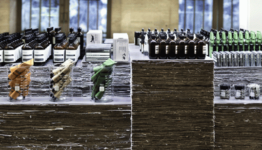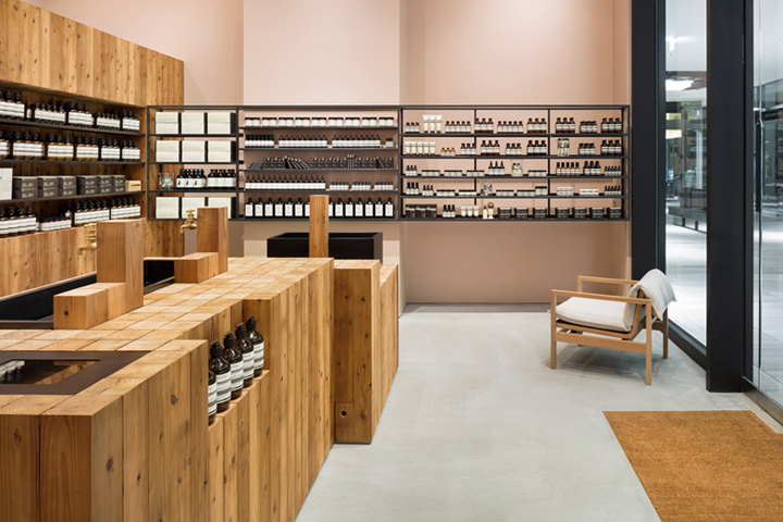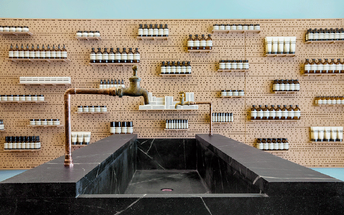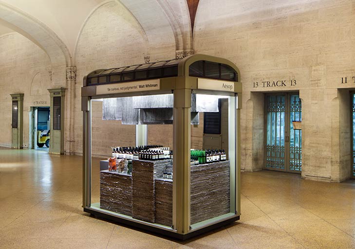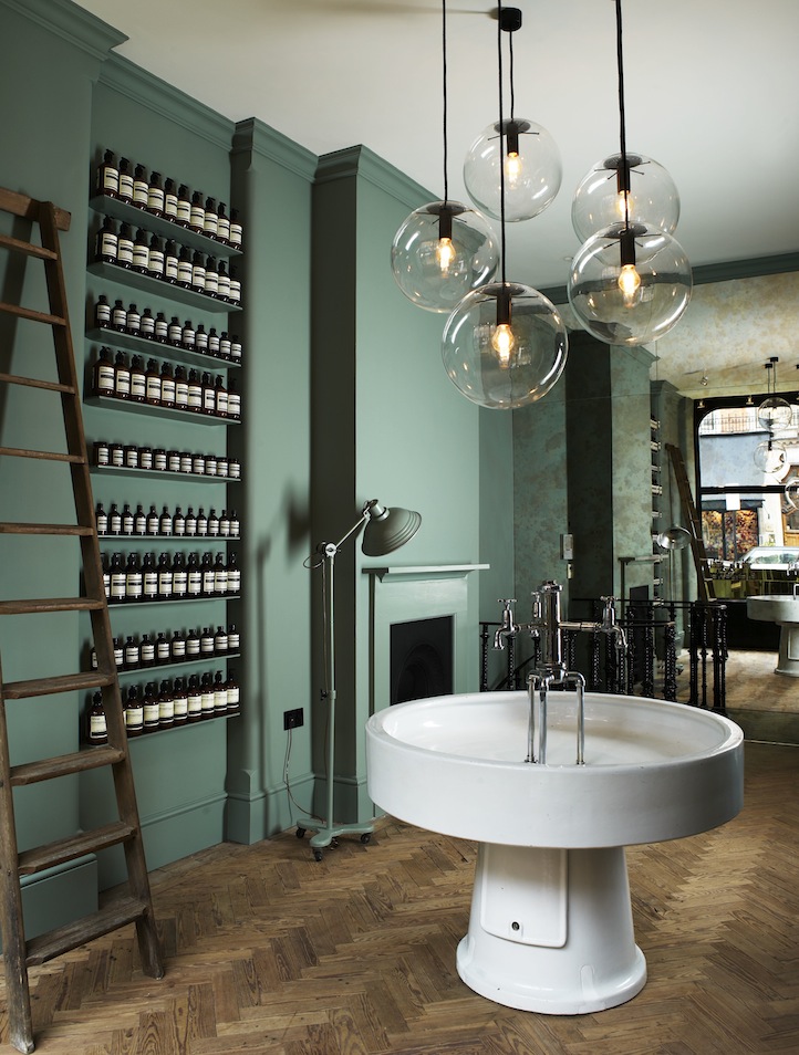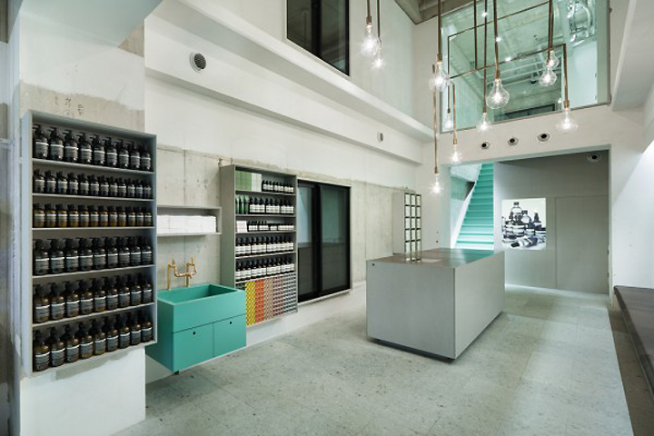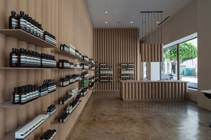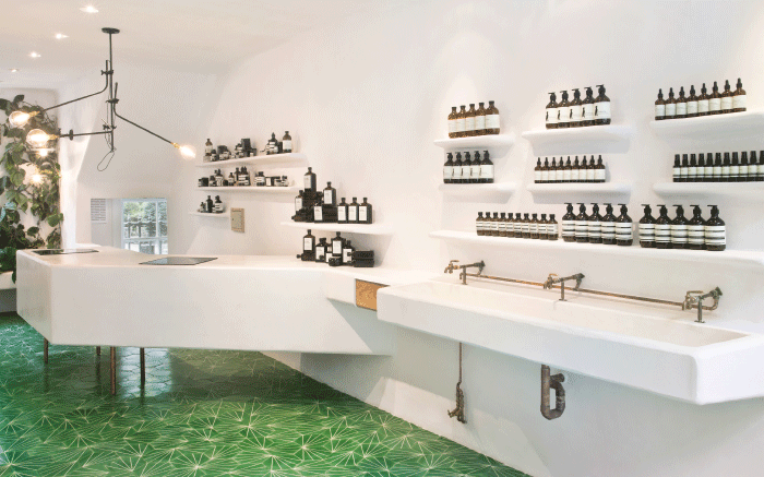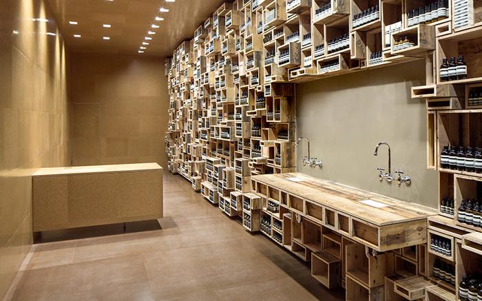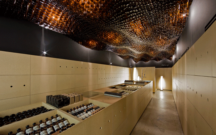 Así es como nos encontramos con el techo del local de Adelaide, realizado con más de 7500 botellas, o uno de los locales de New York construido con más de 400.000 copias recicladas de el New York Times. Esta estrategia es lo que hace que no encuentres un local de Aesop igual a otro en ningún lugar del mundo.