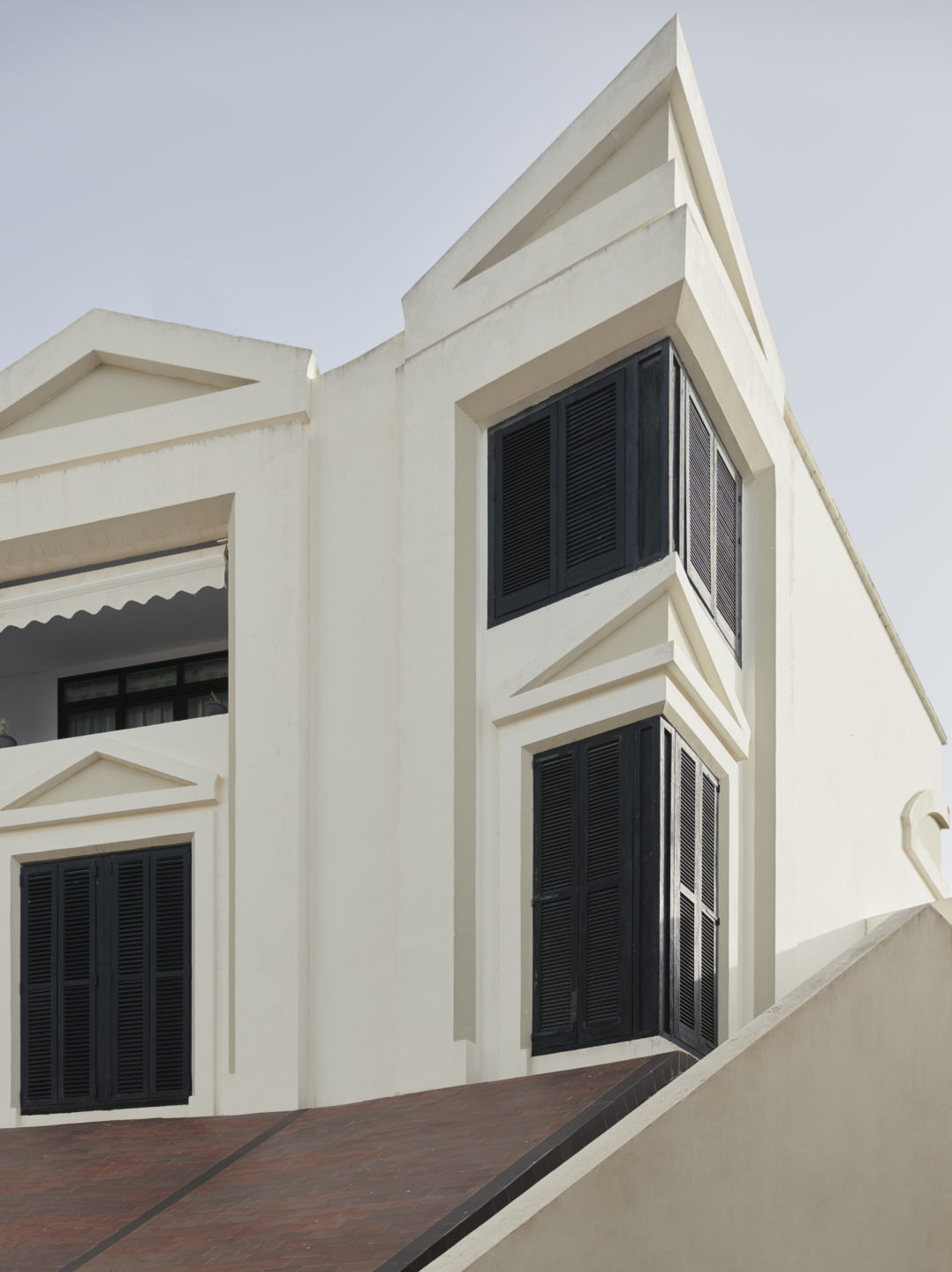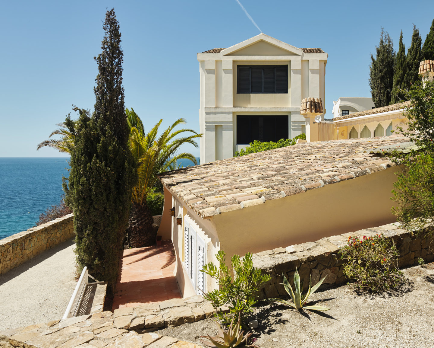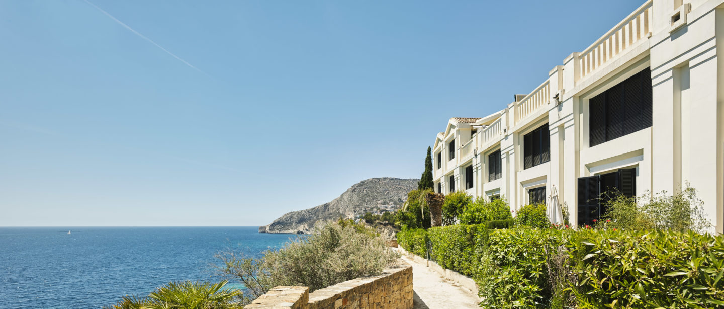 Al otro lado de la piscina aparecen dos edificios rectilíneos situados a lo largo del acantilado. Su fachada lado mar está compuesta por un ritmo sereno de dobles pilastras que corresponden a las divisiones de los apartamentos. Esta disposición consigue liberar más espacio y garantiza espectaculares vistas desde el interior.