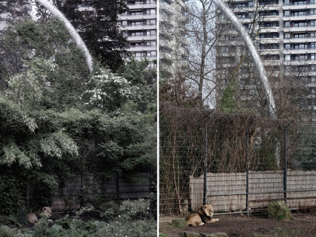 El fotógrafo alemán Daniel Zakharov ha querido resaltar esto con su serie Modern Wilderness lo extraño de esa situación, que muestra la vida de estos animales en el Zoo.