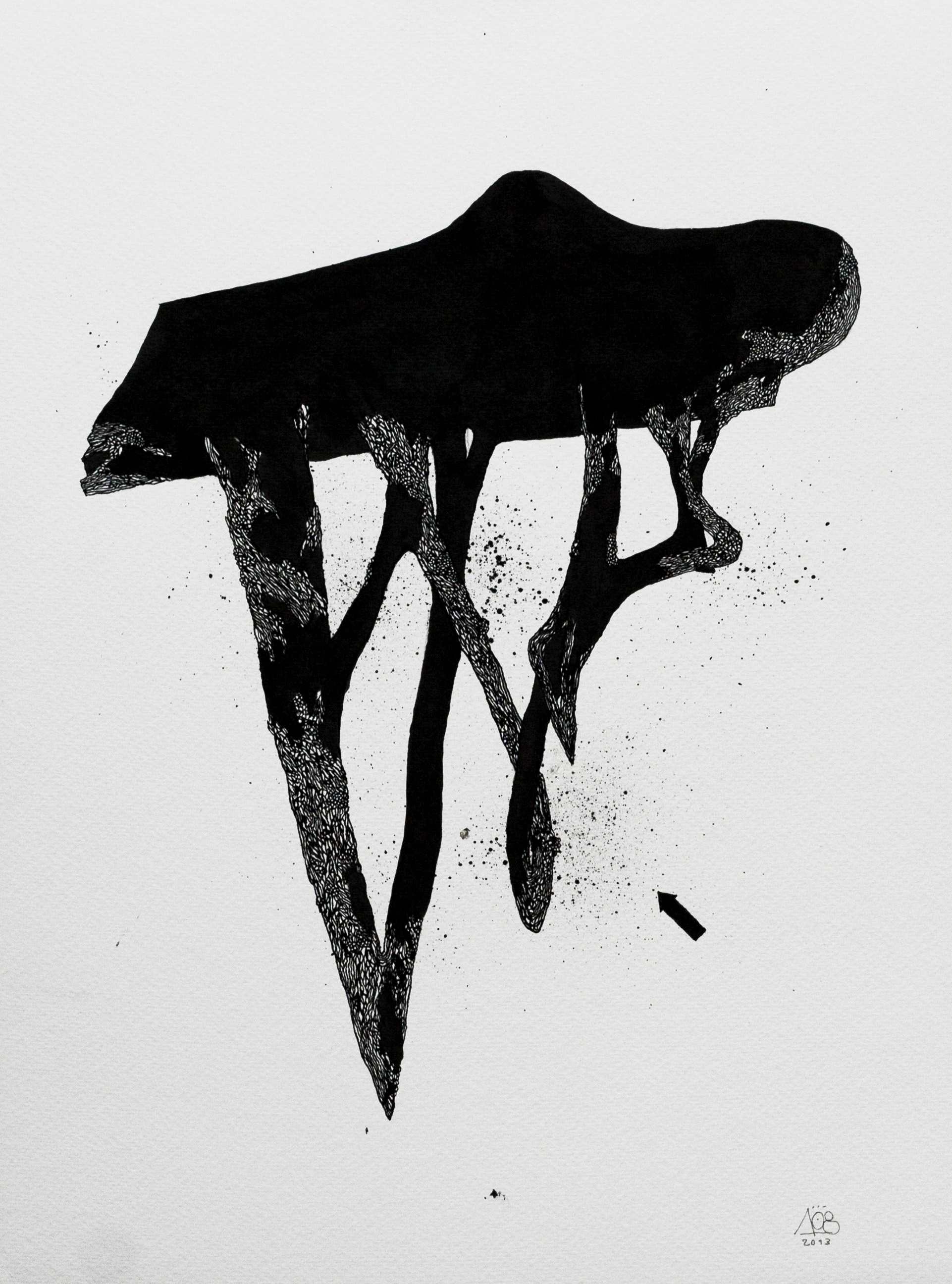 Las formas abstractas negras de 108 son cautivantes y desafiantes a la vez.Ya sea dentro de los confines de una pequeña habitación en un monasterio abandonado, teniendo el efecto de deformar y jugar con las dimensiones de la sala o como vacío flotante surrealista en una pared al lado de una ruta muy transitada.