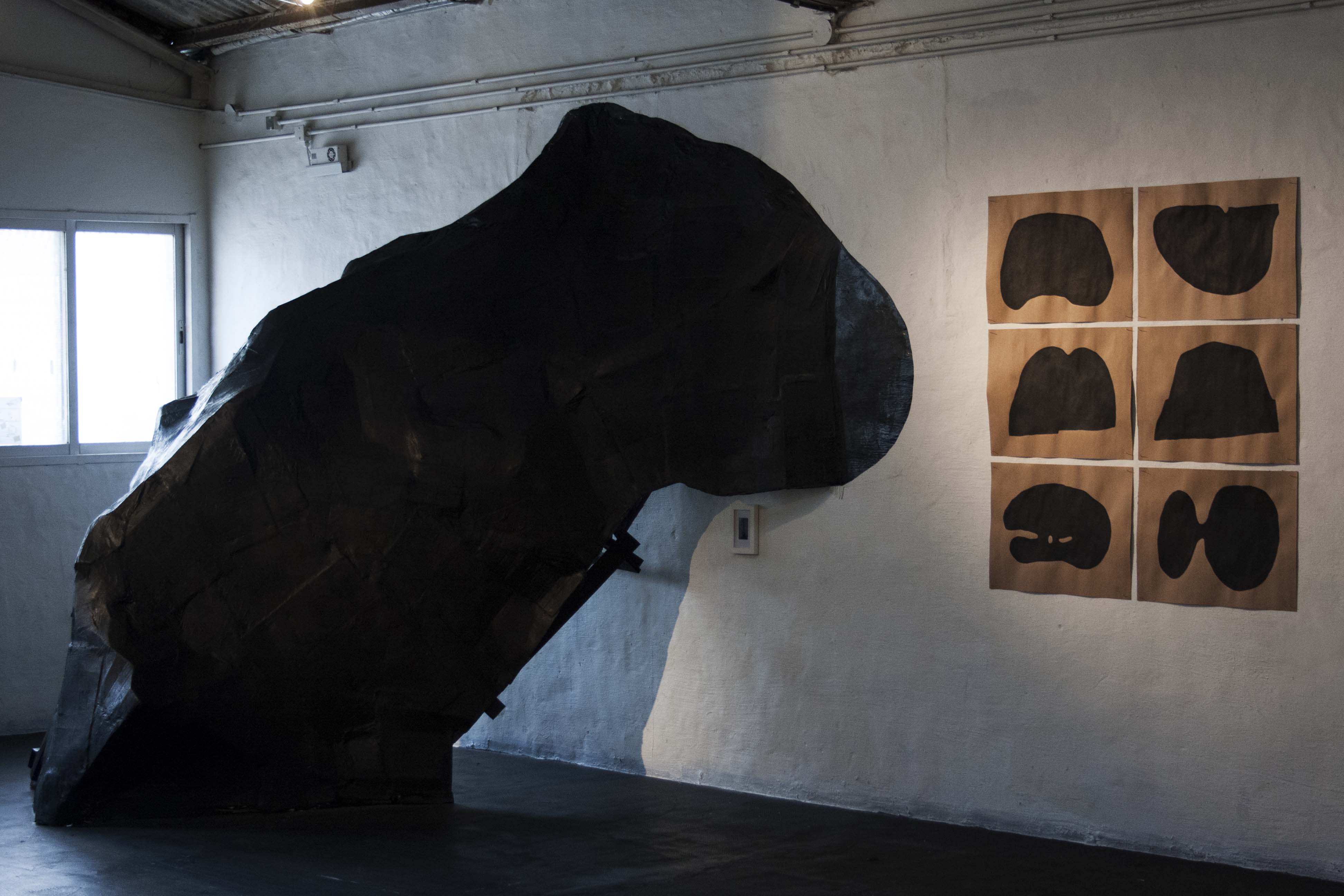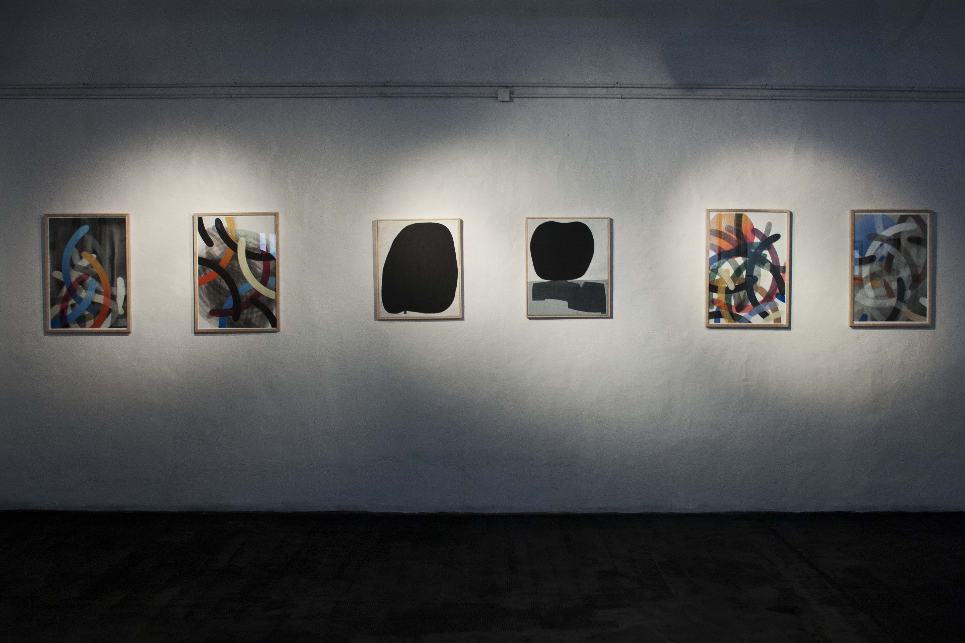 En Antípodas, los artistas presentan nuevas series de trabajos sobre papel, tela y madera, así como dos instalaciones pensadas específicamente para el espacio de la galería.