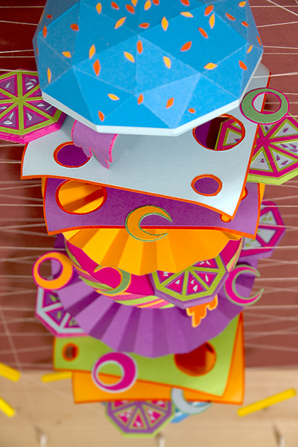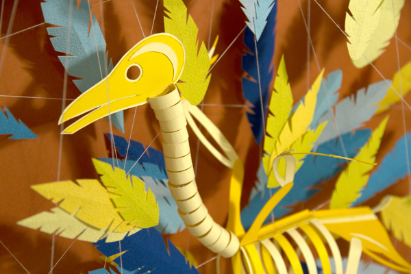 Dos grandes del papercraft, los franceses Lucie Thomas y Thibault Zimmerman de Zim & Zou arman objetos coloridos y fascinantes en papeles, hilos, maderas y cueros para editoriales y posters únicos.