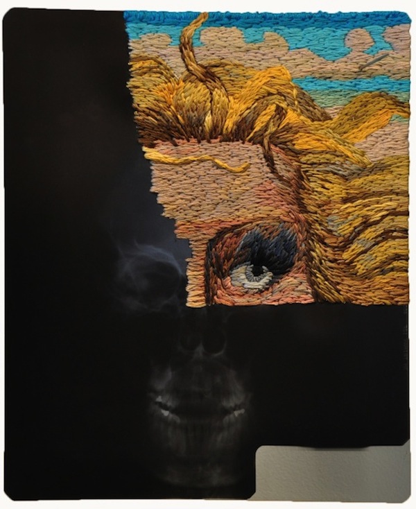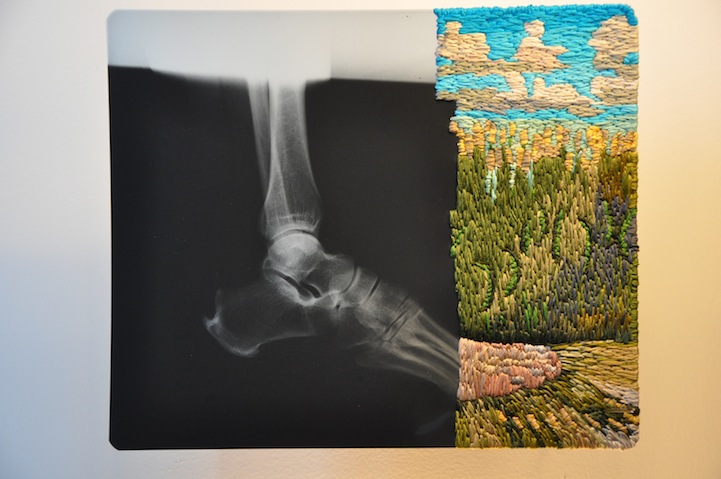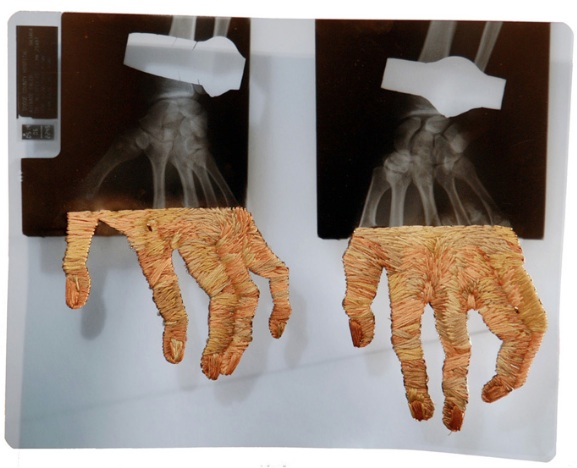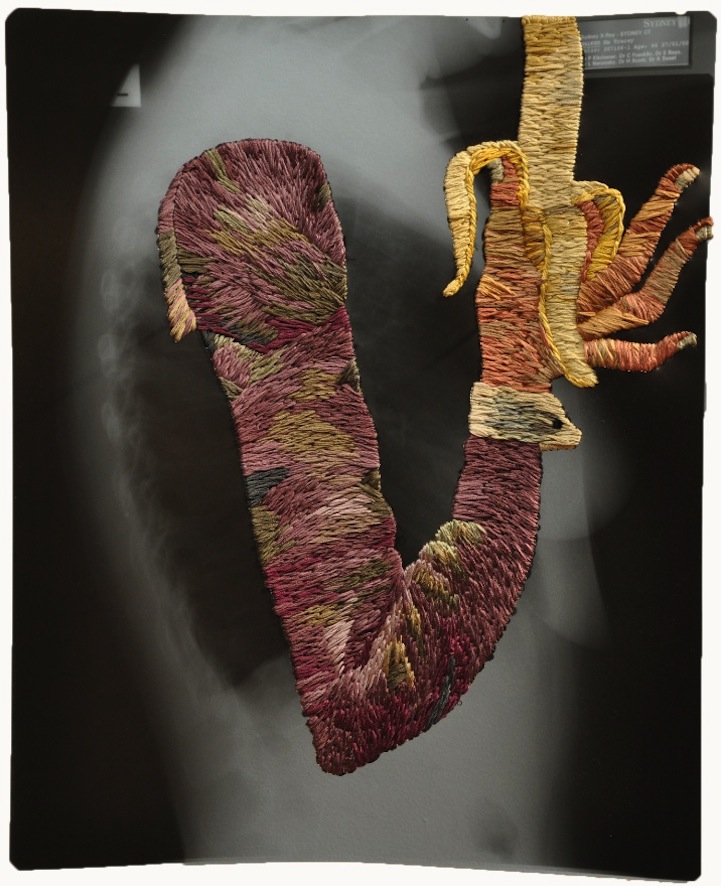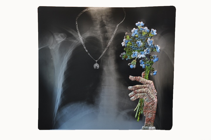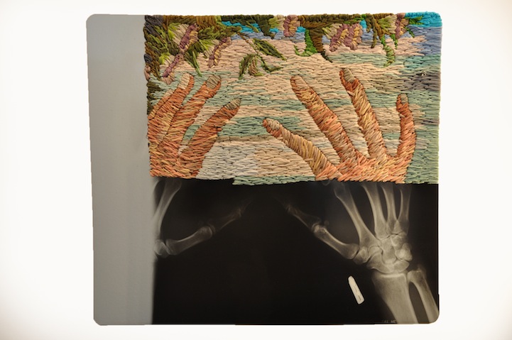 “Para mí, el bordado es algo inherentemente femenino y relacionado con el cuidado, mientras que los rayos x pueden ser considerados masculinos e impersonales” dice el artista. “Encontrar dos materiales divergentes y combinarlos crea, en mi opinión, una nueva entidad que con suerte altera la sensación de realidad del espectador”.