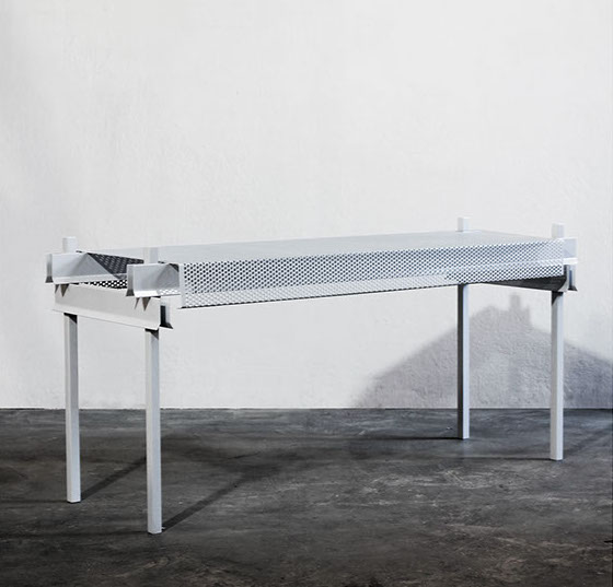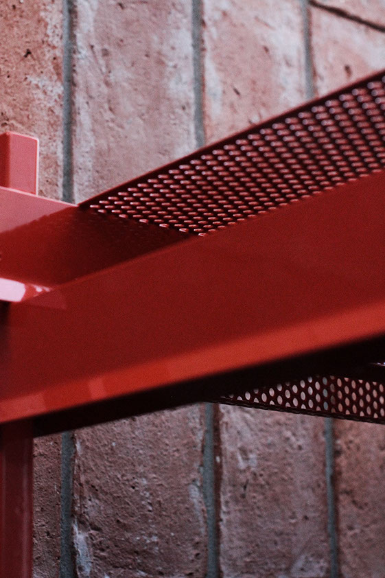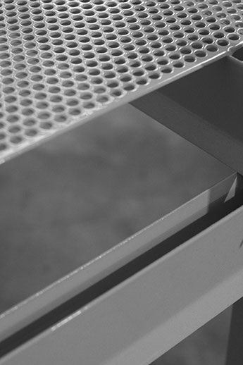 Materiales: Hierro y Chapa microperforada plegada. Esmaltado al horno / Color: a elección del cliente según disponibilidad.