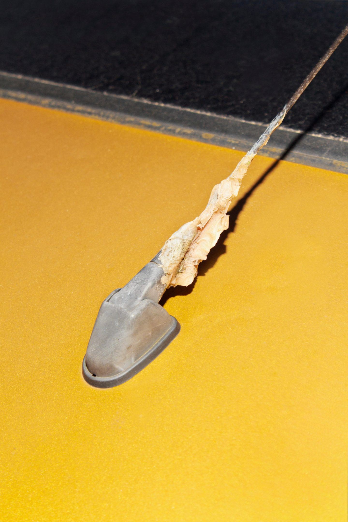 El fotógrafo milanés Ronni Campana llama la atención sobre la belleza visual abstracta que se puede encontrar en los mejores y peores trabajos de reparación de automóviles, en su publicación impresa titulada Badly Repaired Cars