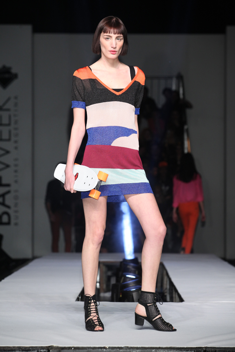 Panzas al aire, telas pegadas al cuerpo y estampas por doquier, complementadas con siluetas tendientes al oversize y una paleta minimalista desfilaron, skate en mano, por la rockera pasarela de la marca. El verano de AYNot viene colorido, con piernas al aire y subido a las tendencias.
