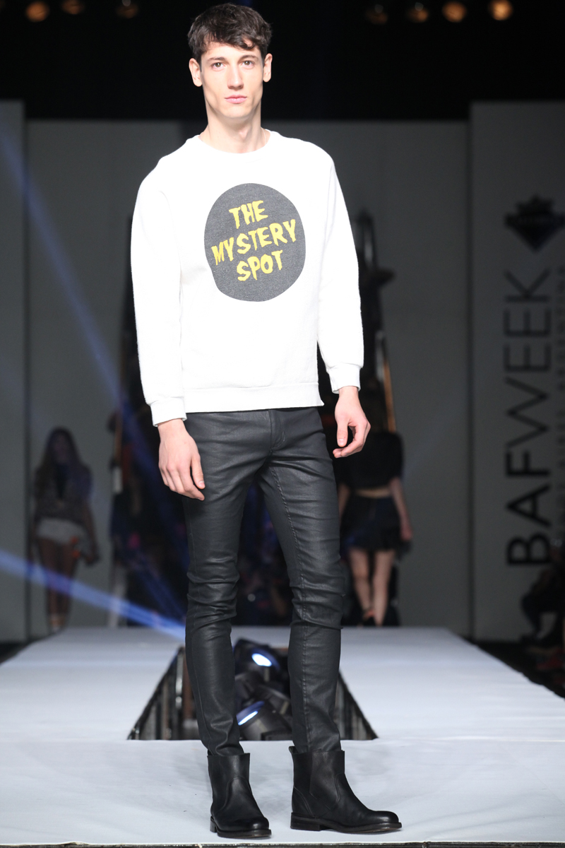 Tomando este sitio como puntapié y una mezcla entre el punk de fines de los setentas, el skate, y las siluetas noventosas, A.Y. Not Dead presentó en el marco de BAFWeek su nueva colección “The Mystery Spot”, para la Primavera Verano 2013/14.