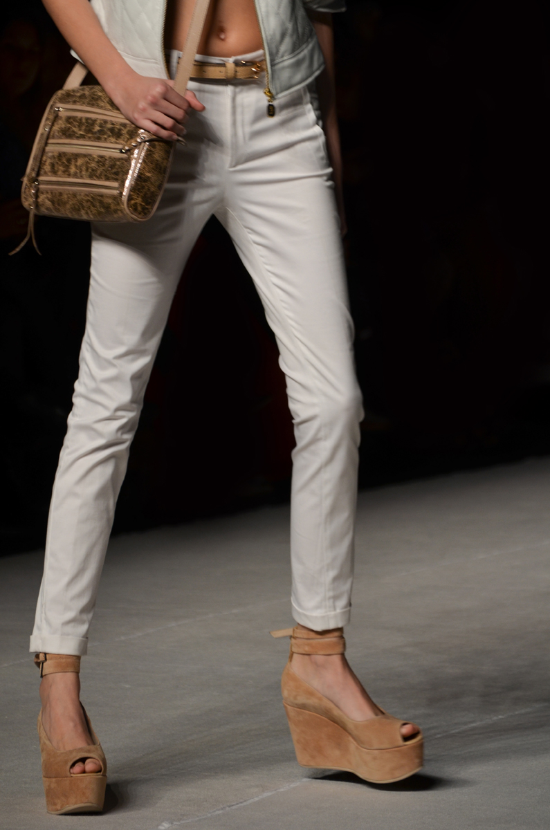 Sensuales, como Brigitte Bardot pavoneándose por los muelles de madera, las plataformas, mocasines y sandalias se enfundan en pitón, gamuza y cueros metalizados para capturar los rayos de luz iluminando el caminar a su paso. Se combinan con carteras estructuradas de aires vintage, con detalles a contratono y prints en reptil, entre las que se destaca bien afín al aire setentoso una hobo con descontrolados flecos metalizados.