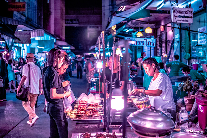 La manipulación de los tonos enfatiza las características de la luz brillante y los estallidos de color – permitiendo detalles finos y texturas para capturar el ojo del espectador. Muchas de las imágenes captan aspectos únicos de la vida de Bangkok.