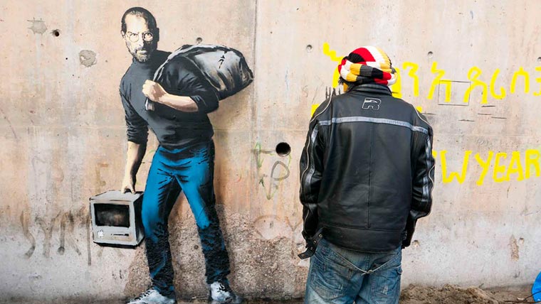 Obras con mensajes satíricos como “No estamos todos en el mismo bote” o “Capaz esta situación se va a arreglar sola”, además de recordar que el gran Steve Jobs era hijo de sirios antes de ser adoptado, las piezas buscan generar, como siempre, algo de conciencia.