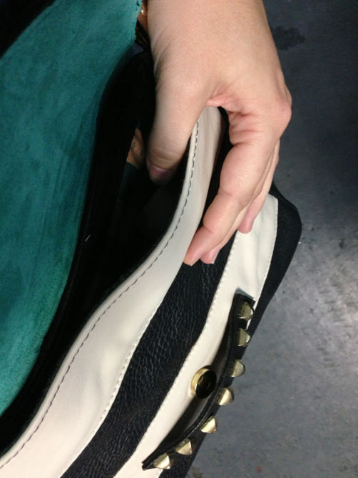 Sorpresa en serio fue enterarnos que estábamos convocados a la segunda etapa del concurso, donde junto a 10 bloggers que se destacaron por sus ideas materializamos la cartera Flaneur. Rayas, si; cuero, rock y un toque de verde esmeralda que sorprende en el interior, de la misma forma que un verdadero flâneur se sorprende cuando encuentra cosas nuevas que le encantan. Bandolera, con una tira de tachas para desmontarle la correa y volverla sobre noctámbulo, de cuero con una solapa con textura simil avestruz. Era soñada y era un sueño hecho realidad. Rayada, porque en verdad, nosotros también lo estamos un poco.