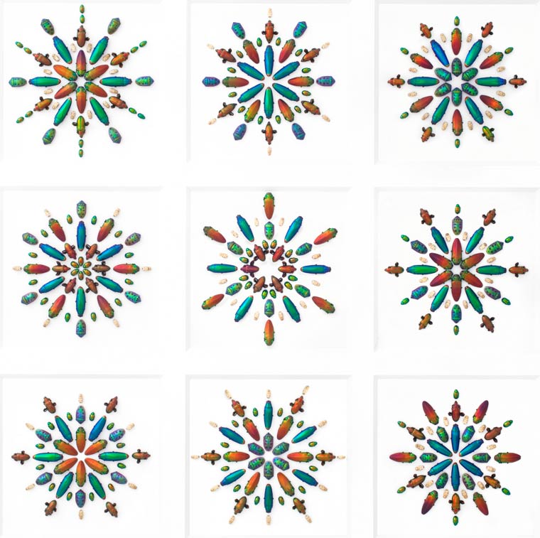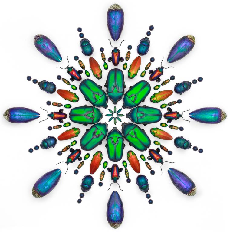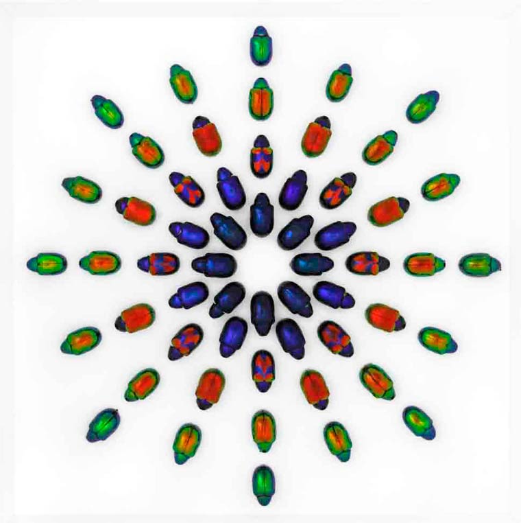 Biophilia es el proyecto del artista y conservacionista Christopher Marley, que colecciona y usa diferentes insectos de alrededor del mundo para crear mosaicos, mandalas y otras composiciones coloridas, con mucha precisión y delicadeza. Por medio de sus creaciones, el taxidermista busca crear conciencia no solo sobre la belleza de la naturaleza sino de la fragilidad del medio ambiente.