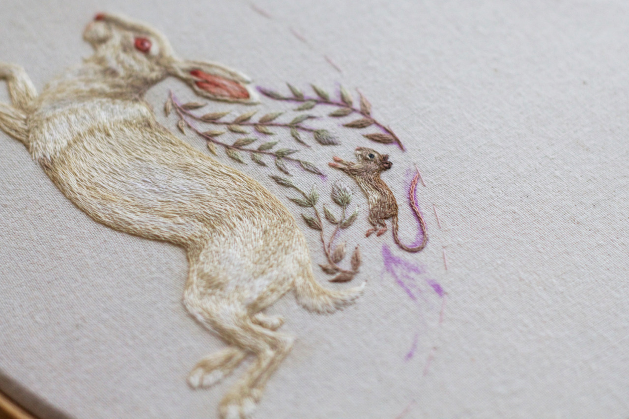 “Aprendí a bordar de forma completamente autodidacta, probando mucho y equivocándome más” cuenta Chloe Giordano, una ilustradora basada en Oxford que transformó sus trazos de lápices de colores en pequeños bordados de animales con un nivel de detalle fantástico.