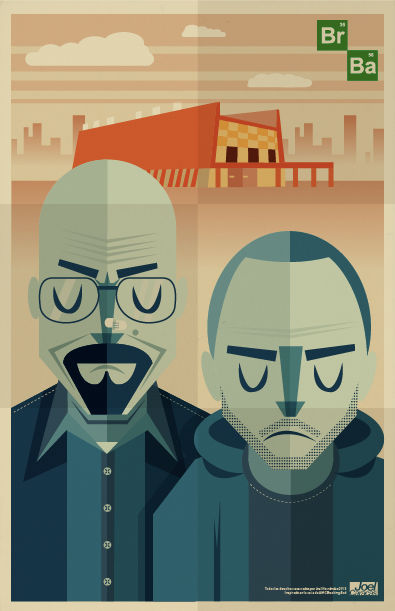 Encontramos por la web estas 5 ilustraciones de Breaking Bad hechas por el ilustrador venezolano Joel Caracas.