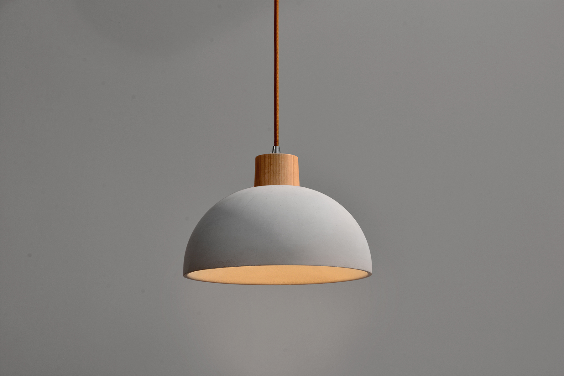 Su lampara Broody es una luz colgante de hormigón que se asemeja a la apariencia de la luz de incubación suave. La lámpara se enciende suavemente en la parte inferior del colgante sin resplandecer, ya que está dentro de la pantalla.