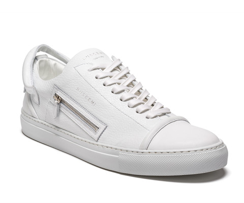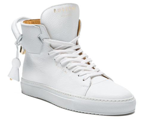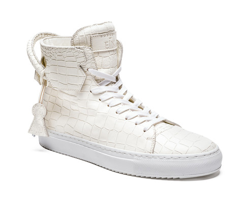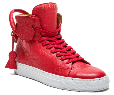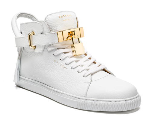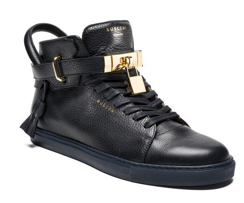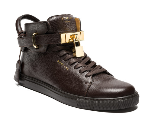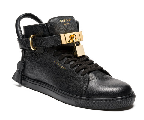 Jon Buscemi, conocido por su trabajo con la marca indie Gourmet, es un veterano a la hora de hablar de calzado. Trabajó con Girl Distribution y DC Shoes, y desde el año pasado creó su marca homónima de zapatillas de lujo. La colección de sneakers está hecha a mano en Italia, con cuero de grano y herrajes enchapados en oro de 18 kilates, una tira de cuero central y un candado intencionalmente similar a las carteras irónicas de Hermès.