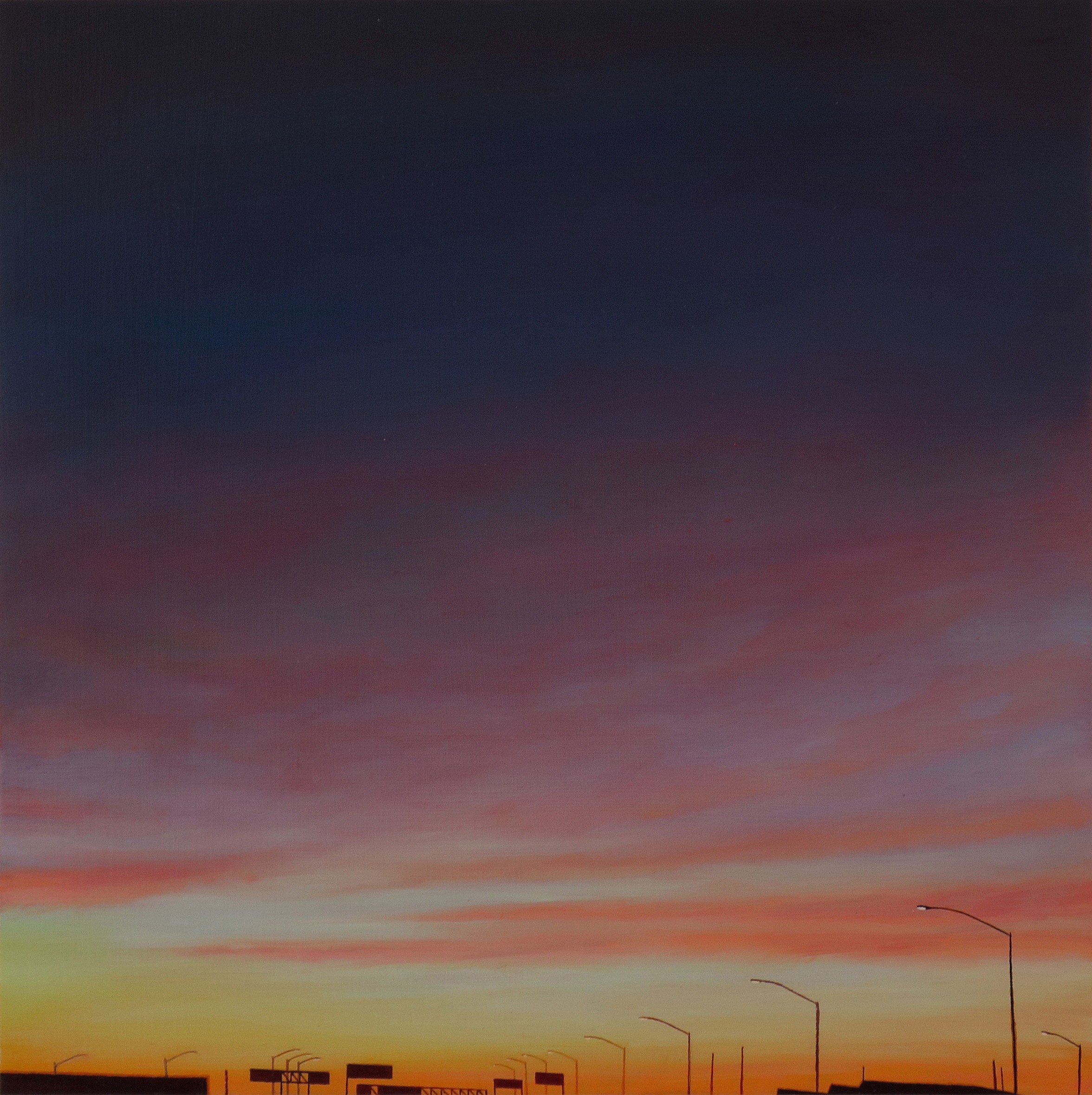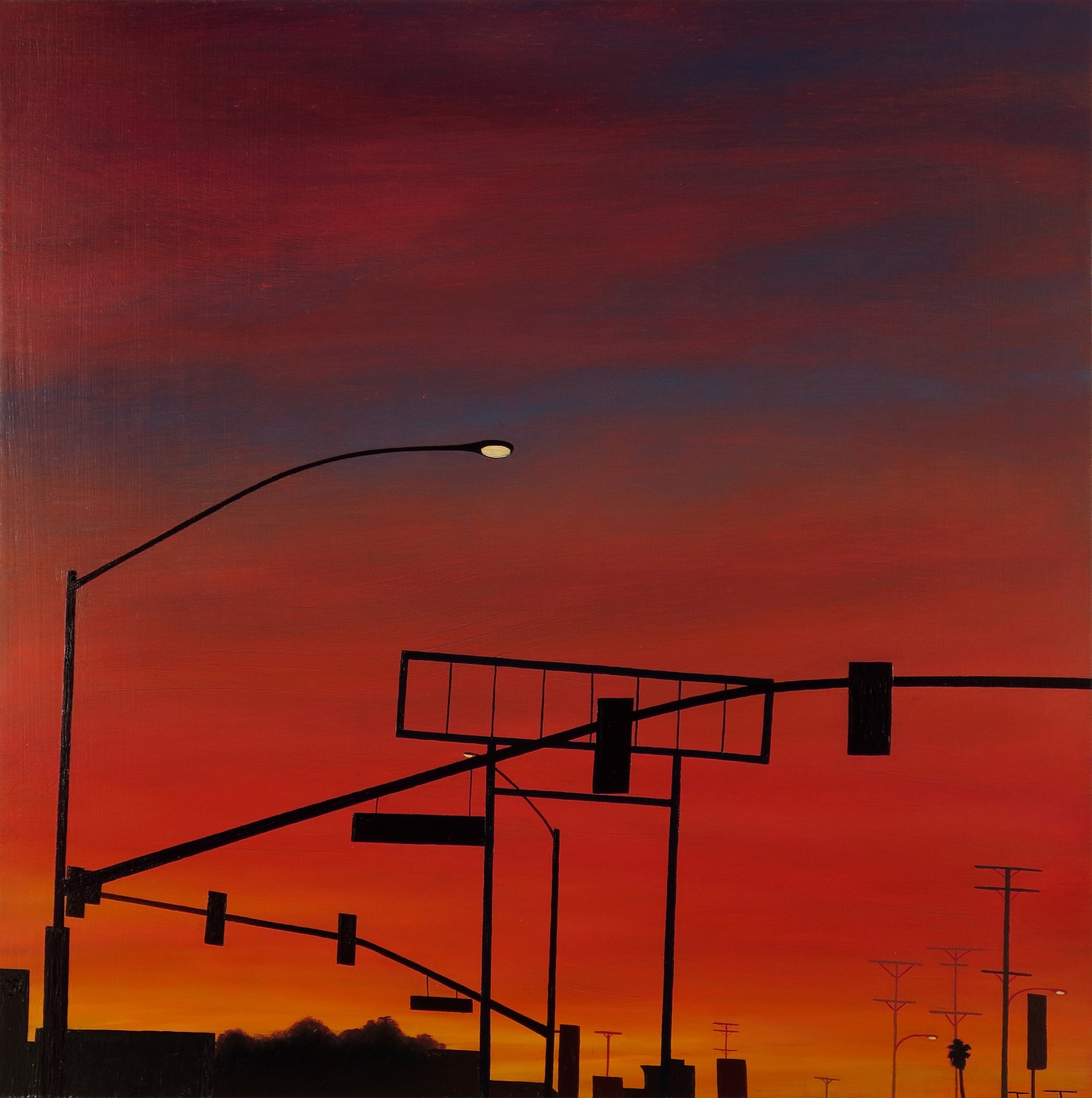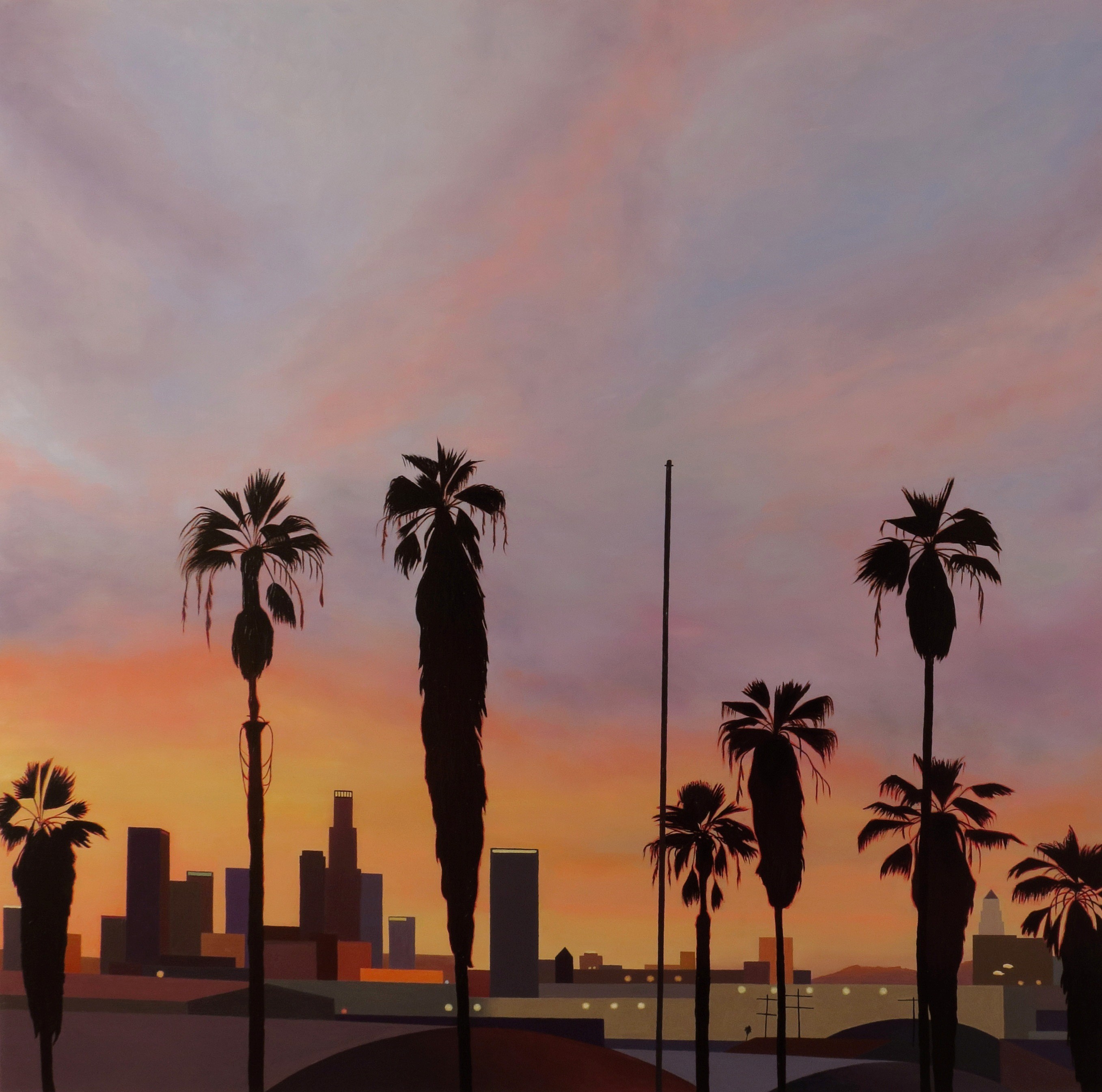 Sus cuadros, escenas generalmente al atardecer de las calles de Los Ángeles, capturan a la perfección los paisajes abiertos de la ciudad, con algunos toques de civilización. Para pintarlos, primero arranca capturando la escena en su celular, para después inmortalizar el momento en sus canvas.