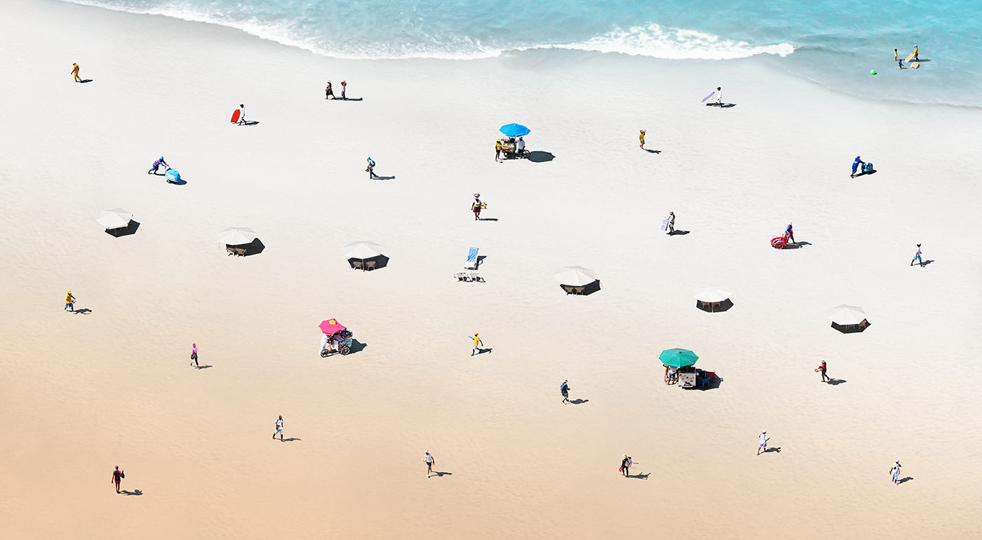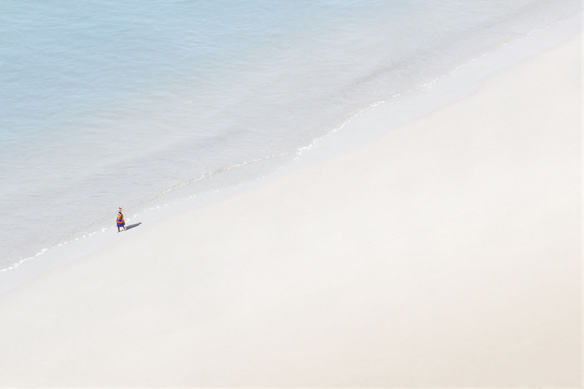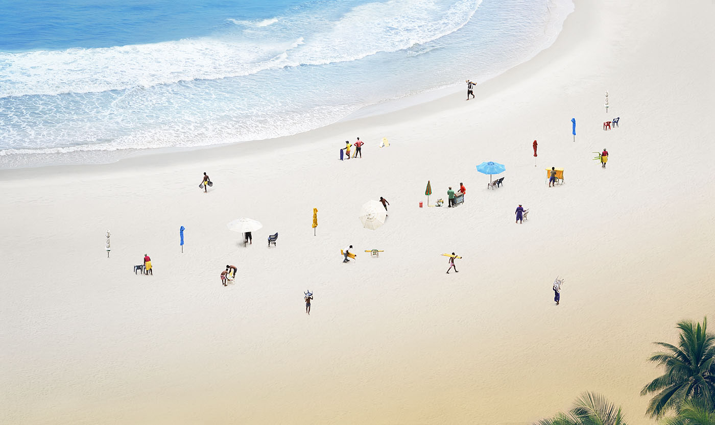 Los Caminantes son el relato rutinario del vendedor ambulante en Cartagena de Indias.Forman parte de una serie que fue objeto de estudio e investigación, cuya atención se centró en el 51% de la población colombiana que, actualmente, trabaja en el comercio informal. la apropiación indebida de los destacados destinos turísticos del país, los vuelve una postal de intención equívoca, que los deja protagonizando esta escena por necesidad y oficio. – Natalia Vidal.