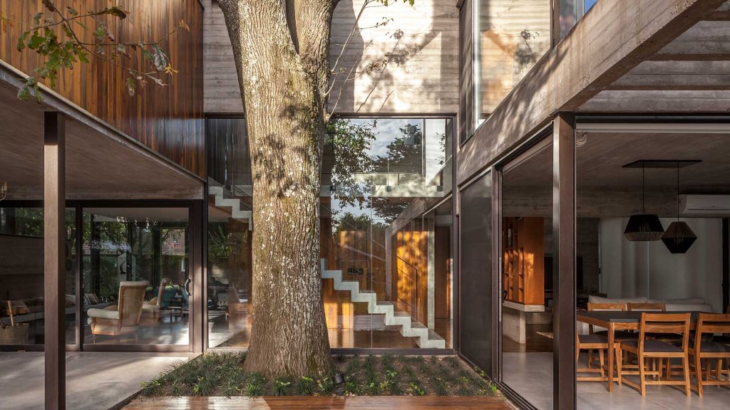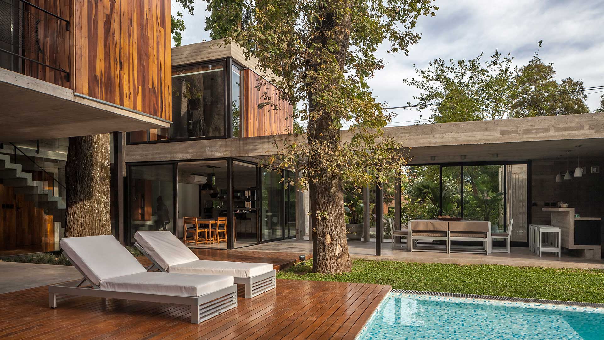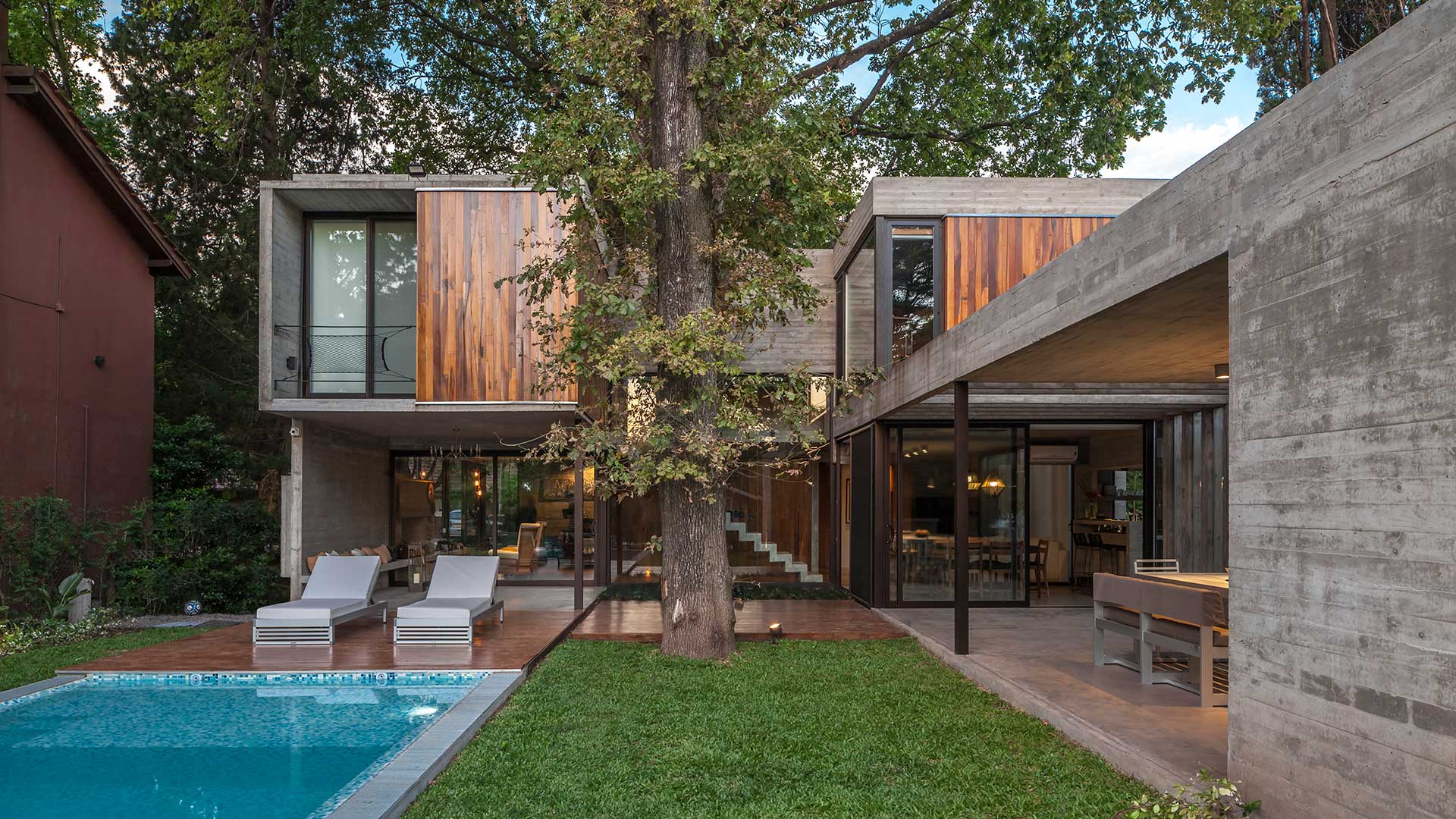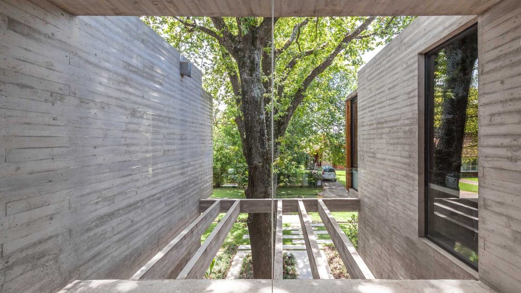 Dandole prioridad al paisaje, en el estudio se decidió que el proyecto no sólo se debía preservar los árboles existentes en el lote, sino que sería esa vegetación el primero y fundamental dato de inicio del proyecto. Se pensó entonces que la casa debía desarrollarse acomodándose en los huecos libres que dejaban los árboles y envolviéndolos para hacerlos parte de los espacios propuestos.