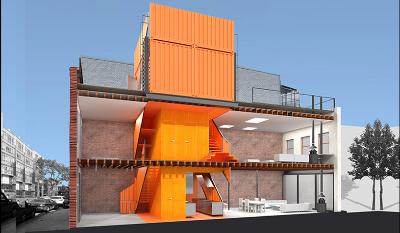 LOT-EK es un estudio con base en New York y Nápoles, Italia, que se especializa en realizar obras con materiales sustentantes y optimizar construcciones ya existentes. En su proyecto “Irving Palace”, combinaron dos edificios en Brooklyn con la ayuda de seis contenedores, que distribuyen el espacio para transformarlo en una casa de 250 metros cuadrados cubiertos y 150 descubiertos.