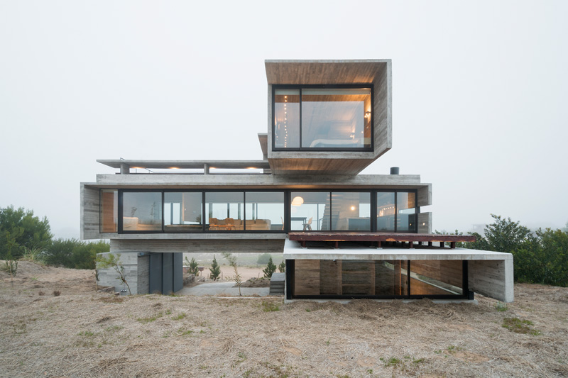 La “Casa Golf” fue creada por el arquitecto Luciano Kruk y está ubicada en el centro del barrio Costa Esmeralda, a solamente 13 kilómetros al norte de Pinamar.