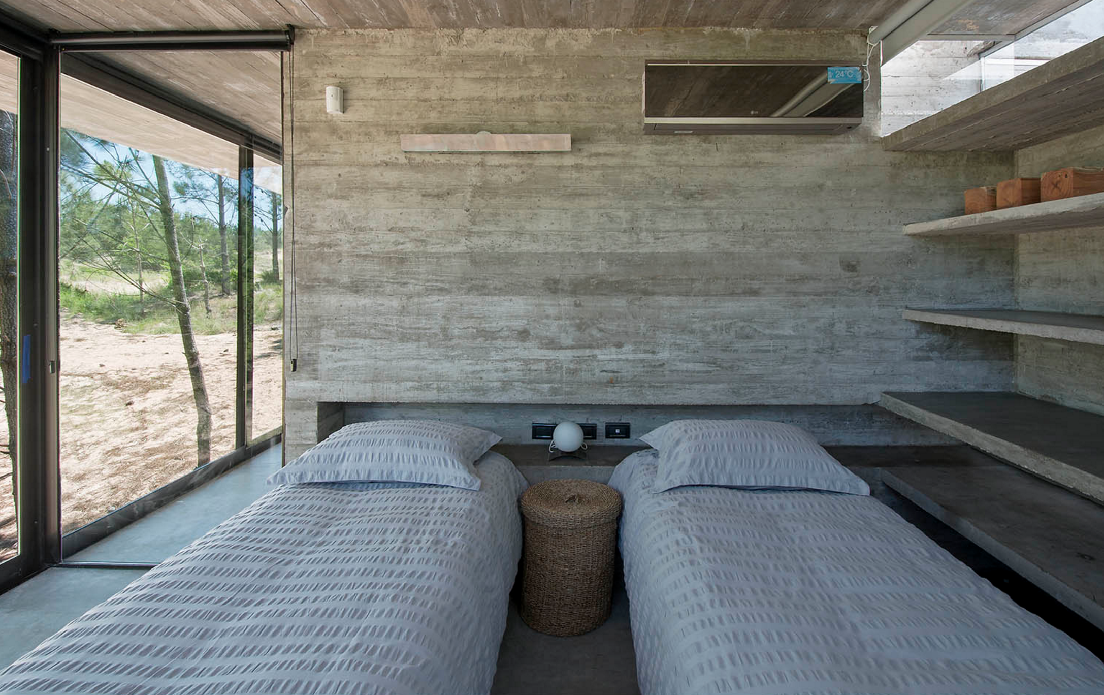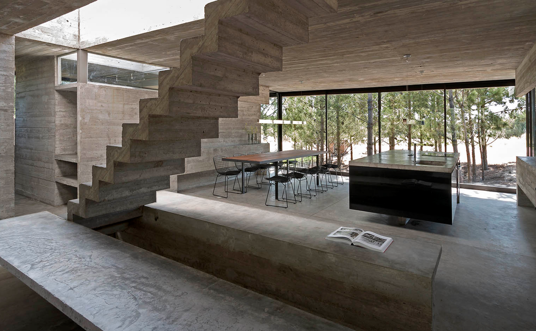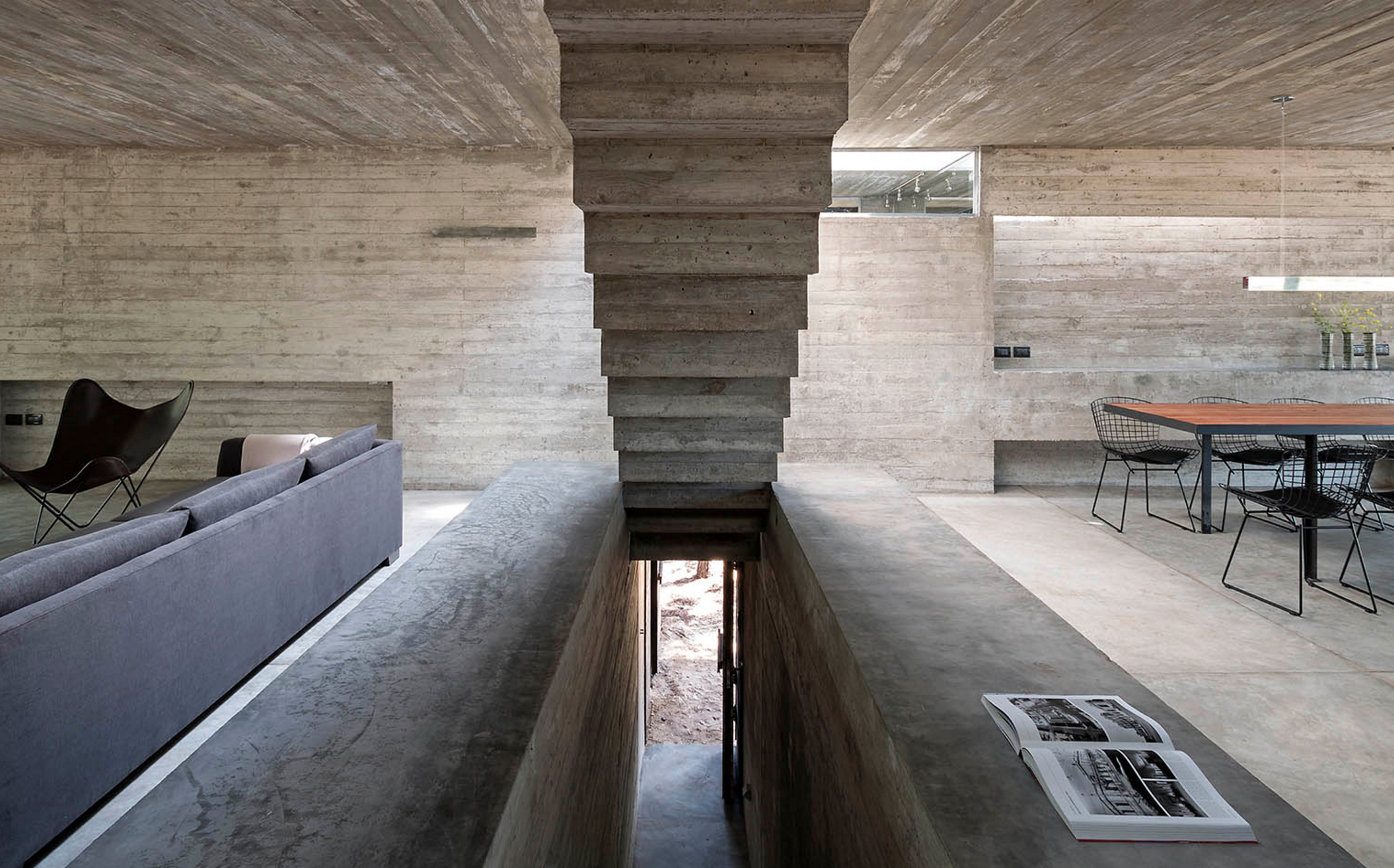 Elegir el hormigón fue la decisión más sencilla. Después de tanto tiempo de hacer casas en la zona, ya entendían la materialidad y su nobleza, permitiendo conservarse a lo largo del tiempo sin prácticamente requerir mantenimiento, además de considerar que el color y la textura “establecerían un diálogo armonioso con el entorno natural propio del lugar”