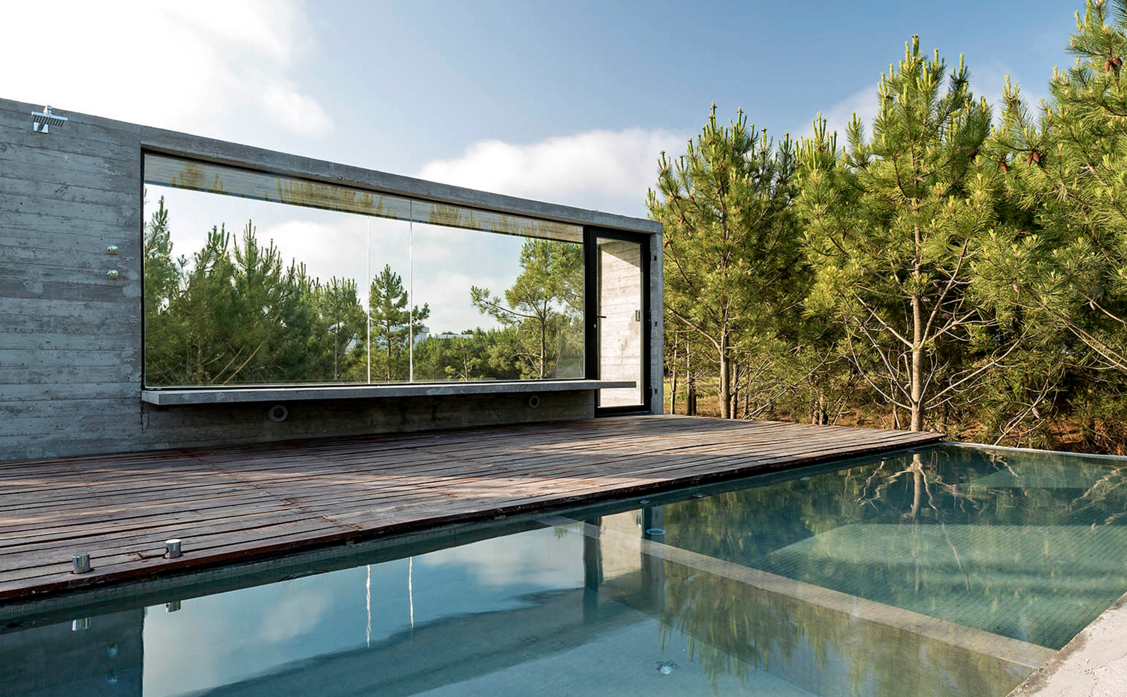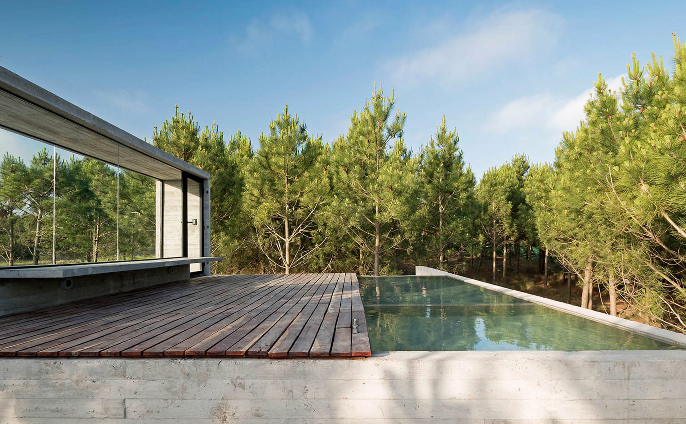 Nuestro lugar favorito es la terraza, un espacio en la planta más alta donde se armó una piscina que sirve para disfrutar del bosque de pinos que rodea la propiedad, y como mirador hacia el mar.
