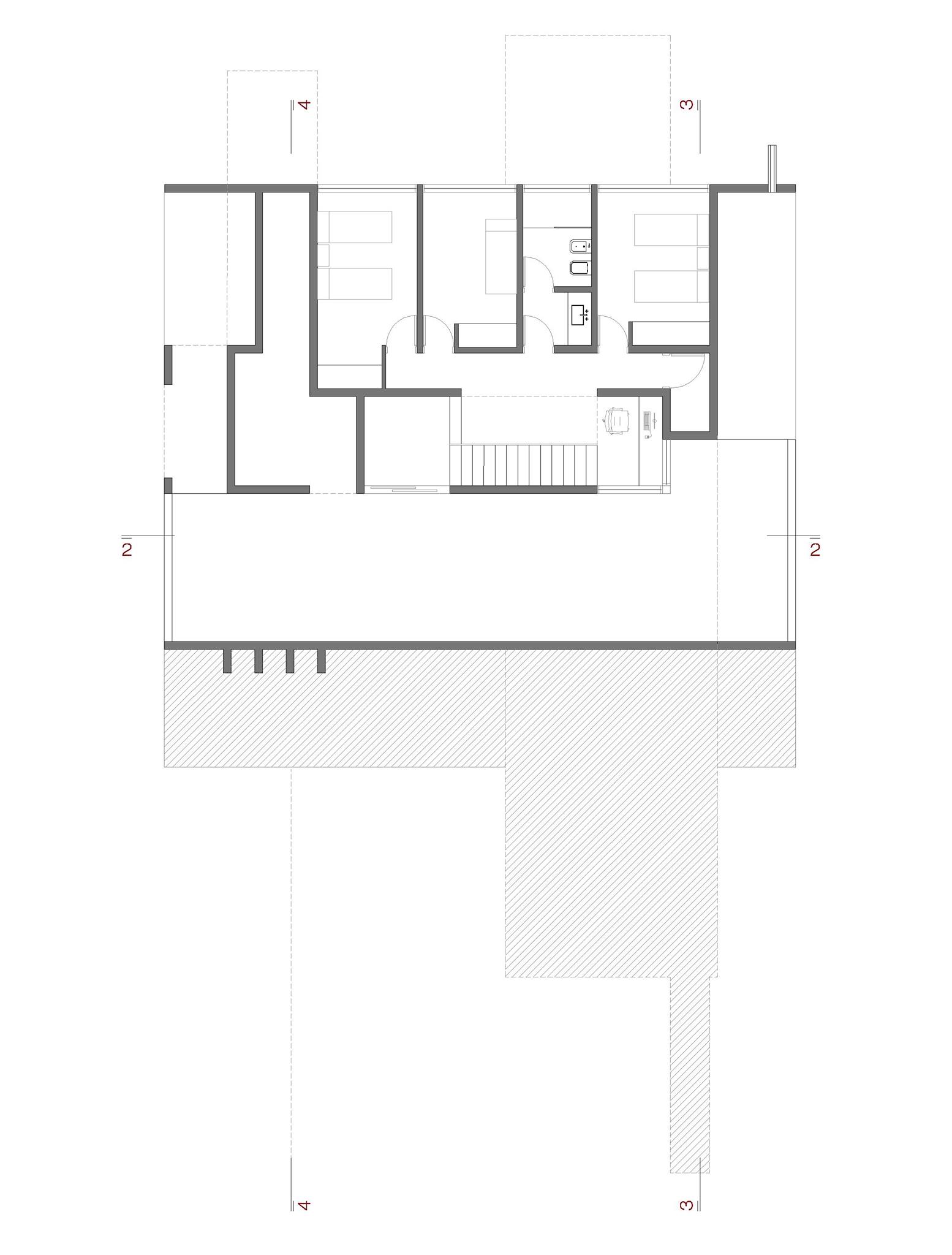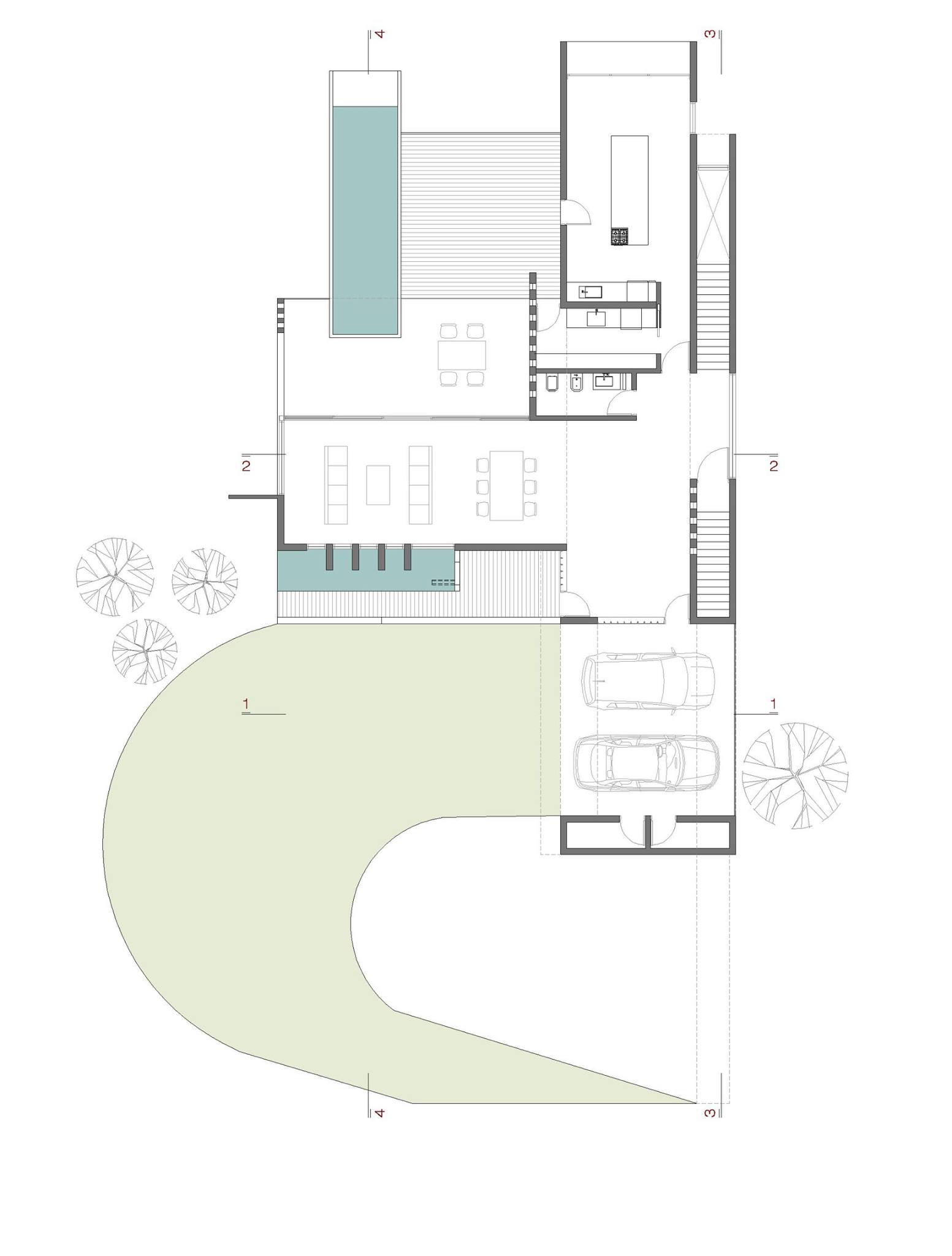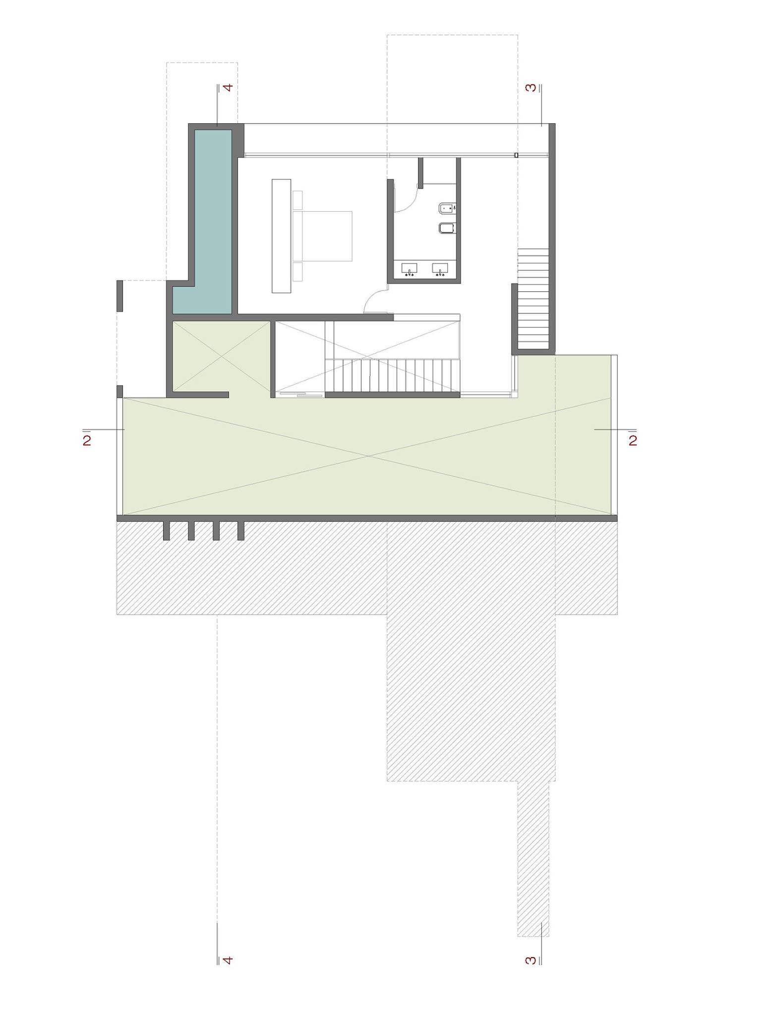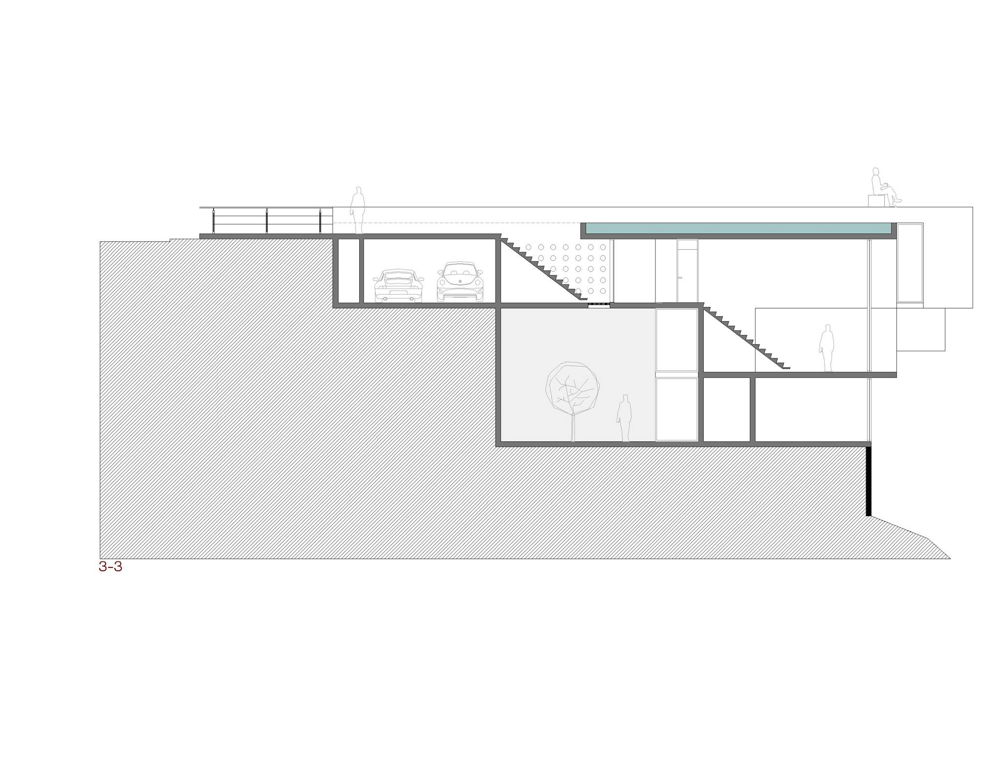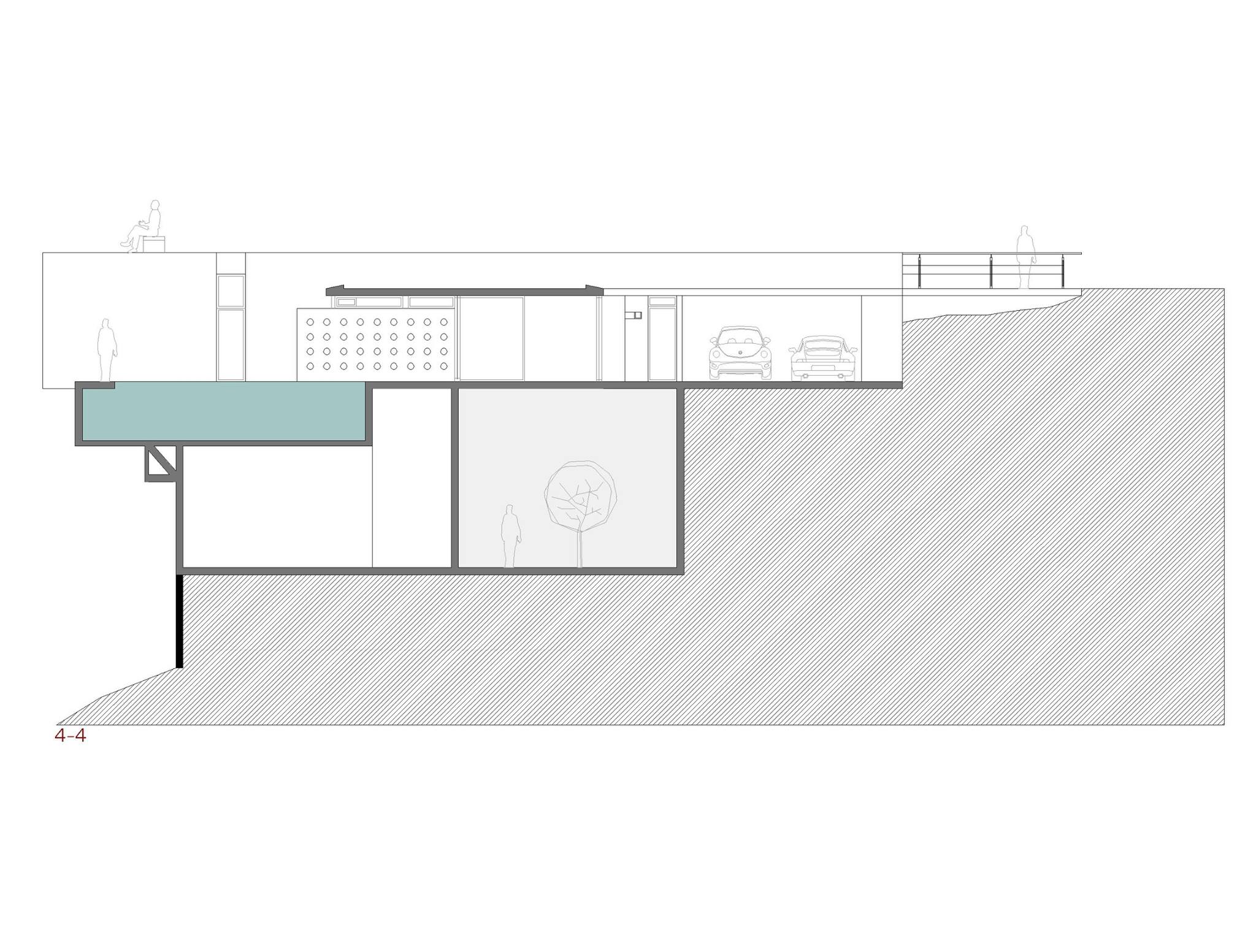 Son 380 metros cuadrados que se dividen en tres plantas con una constante conexión con el exterior, logrando el objetivo de que la casa se asemeje a una suerte de cueva en la sierra. Es así como el área de acceso en el piso más alto sirve como el lugar destinado a las actividades públicas de la casa, con el living, cocina, comedor y área de parrilla con la piscina que hace de balcón infinito frente el paisaje.