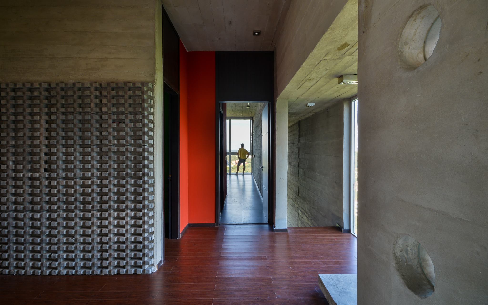 La casa está diseñada de tal forma que el paisaje queda abierto en los ambientes donde uno permanece, mientras que se esconde en las circulaciones. “El sentido fue ajustarnos a la naturaleza del lugar” cuenta el arquitecto “usamos materiales como piedra local y hormigón, para lograr la mejor mimetización con el entorno y causar el menor impacto posible”