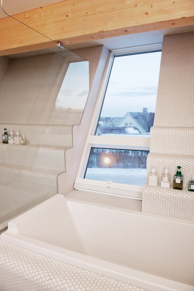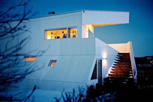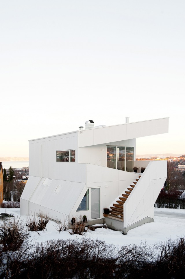 Situado en la zona residencial de Havstein en Trondheim, Noruega, esta casa tiene vistas al fiordo ya la ciudad.