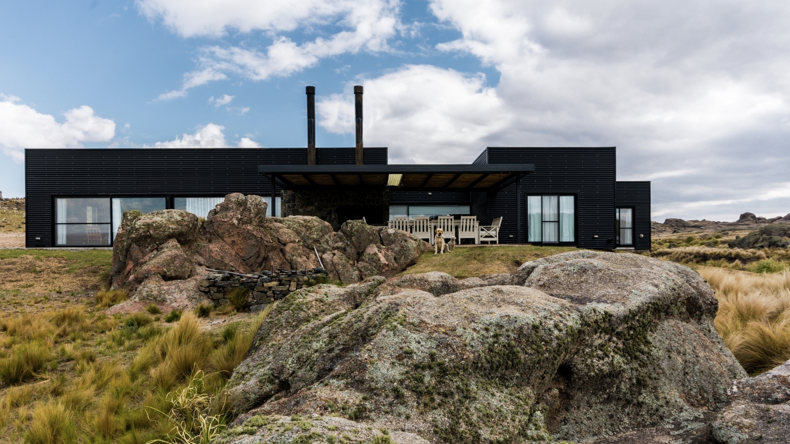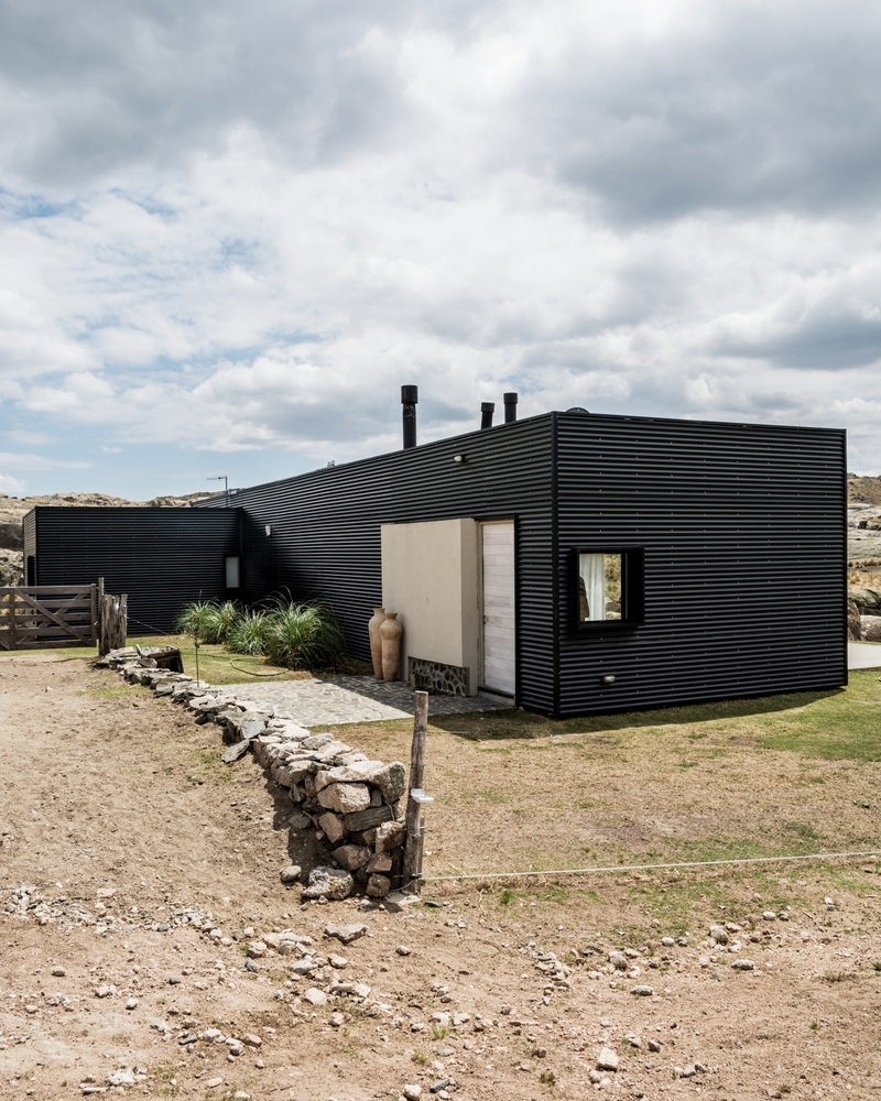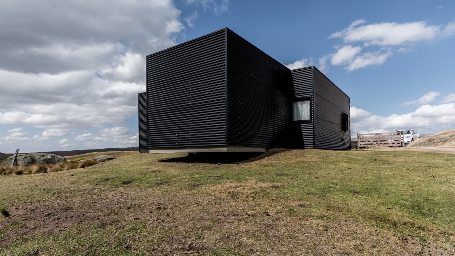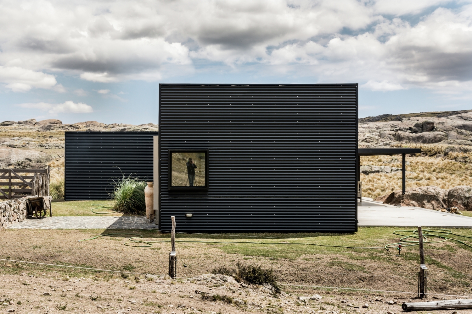 Un lugar para hacerse una escapada para las vacaciones, esta fue la idea que tuvo la arquitecta Mariana Palacios a la hora de construir Casa Pampa, un bloque cubierto en metal corrugado negro en Pocho, Córdoba.