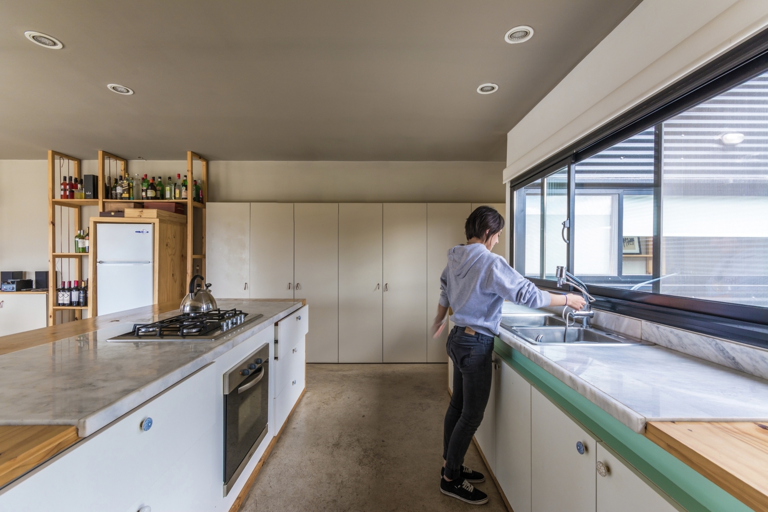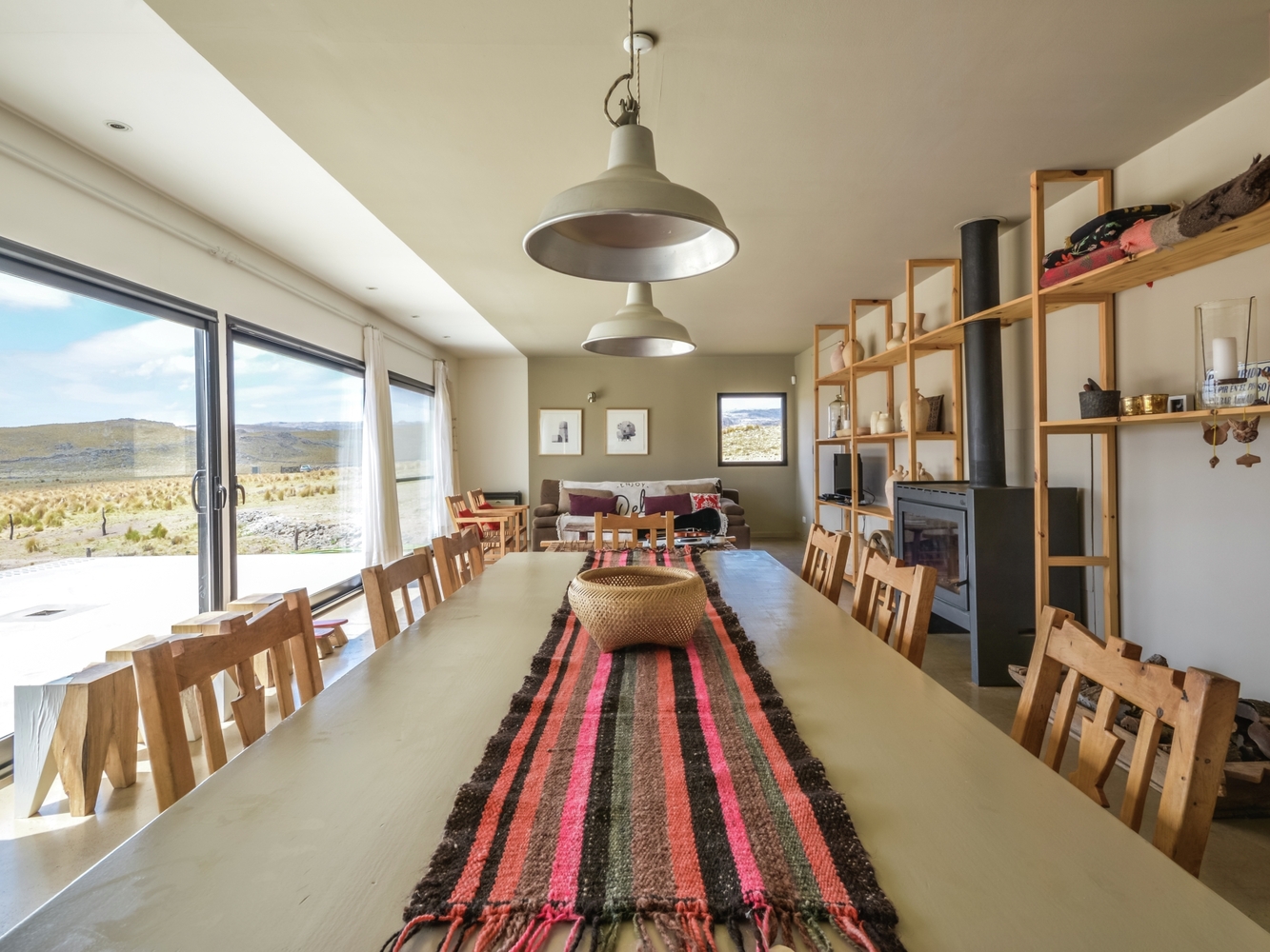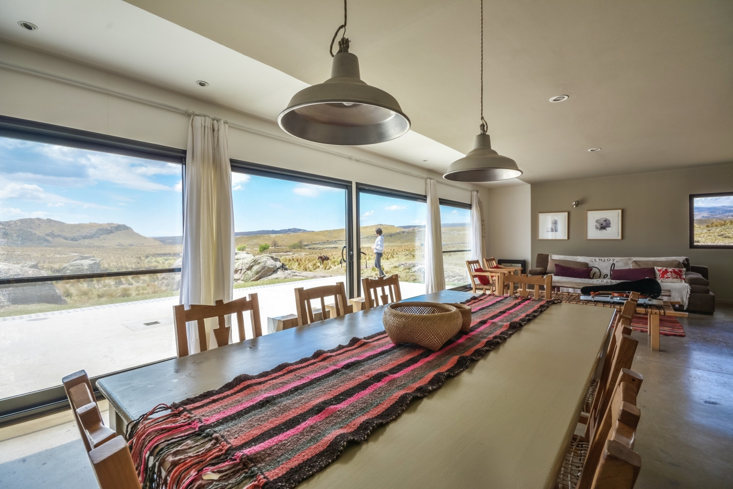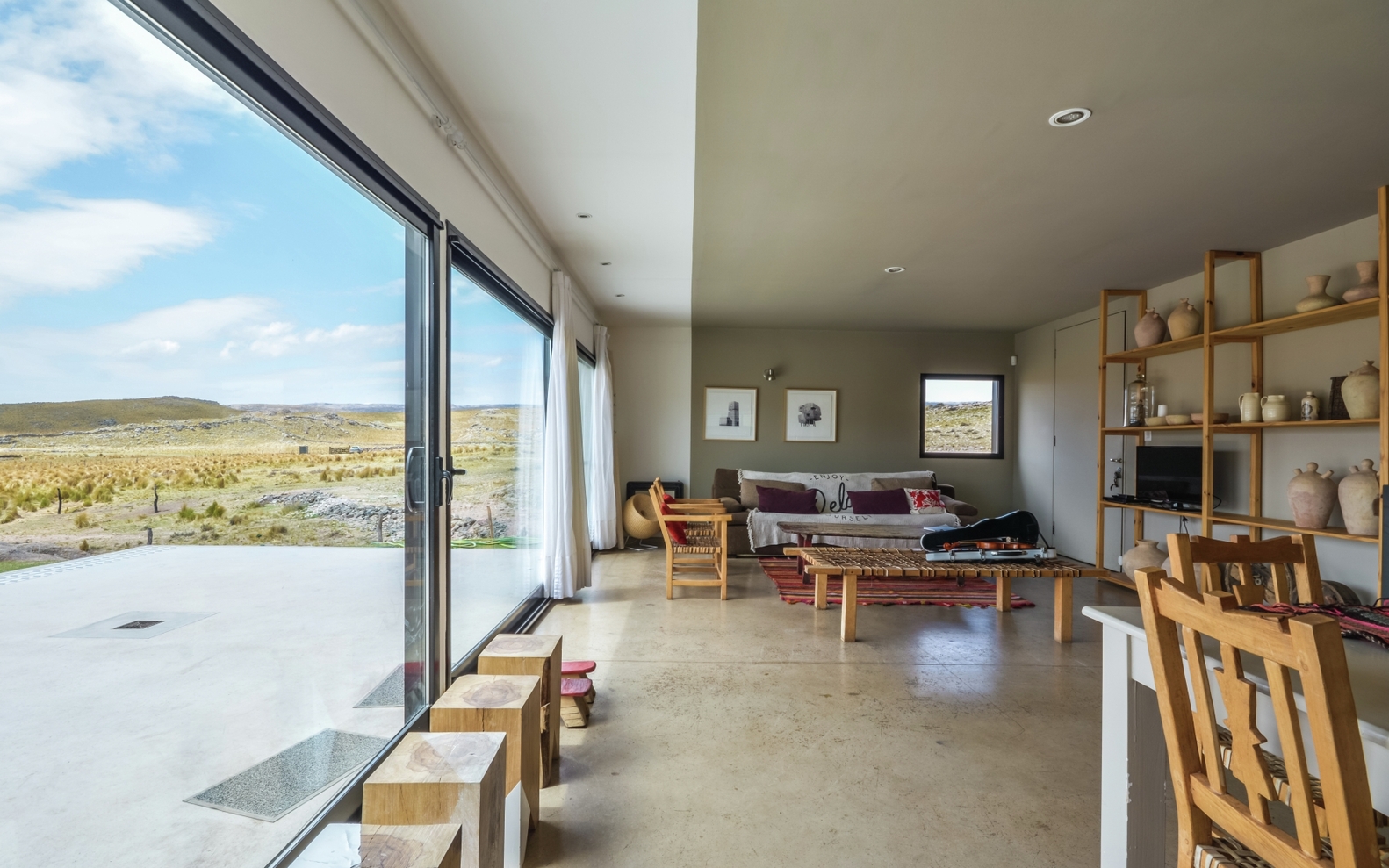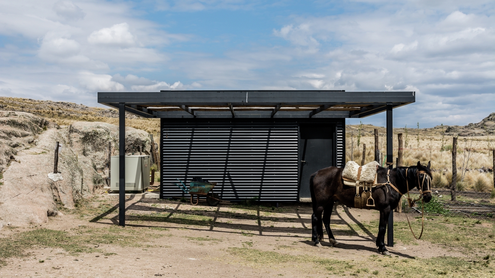 El lugar de construcción es bastante inhóspito, por lo que todo el diseño de la casa se vio sujeto al sistema de construcción que se necesitaba. El clima es riguroso, no hay agua ni luz, así que se optó por un método industrializado con materiales livianos que fueran fáciles de llevar y colocar. Se armó todo en un estudio en Córdoba, y se llevó en dos viajes a la zona donde finalmente se emplaza la casa.