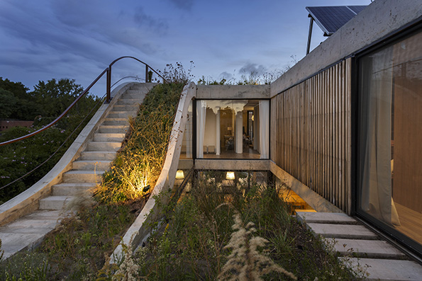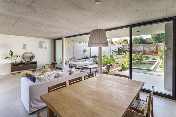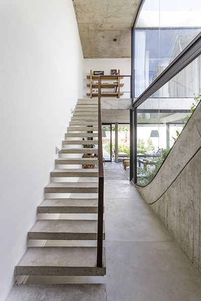 El proyecto es implantado en un terreno en San Isidro, Buenos Aires, Argentina, donde se generó un juego topográfico a través de una cubierta verde que une el jardín con la planta alta, generando una conexión franca entre ambos niveles, y la planta alta con el techo de la misma, buscando la integración completa de la casa con la naturaleza.