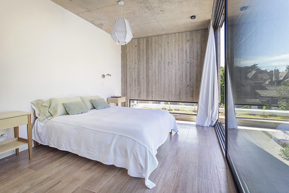 La materialidad de la vivienda fue concebida con materiales nobles sin mantenimiento, como es el hormigón, la madera dura y el vidrio.